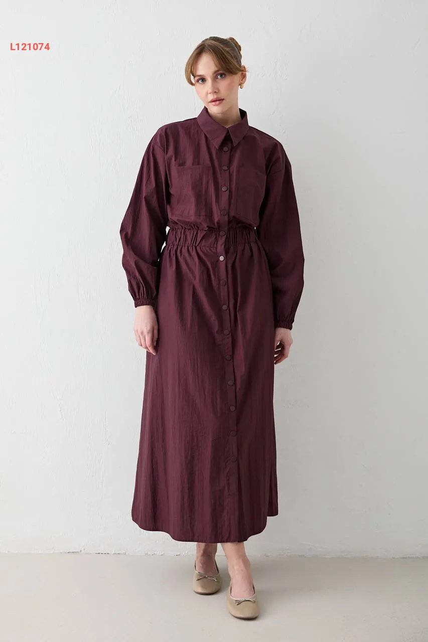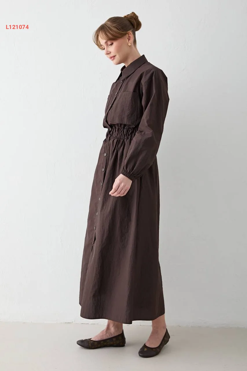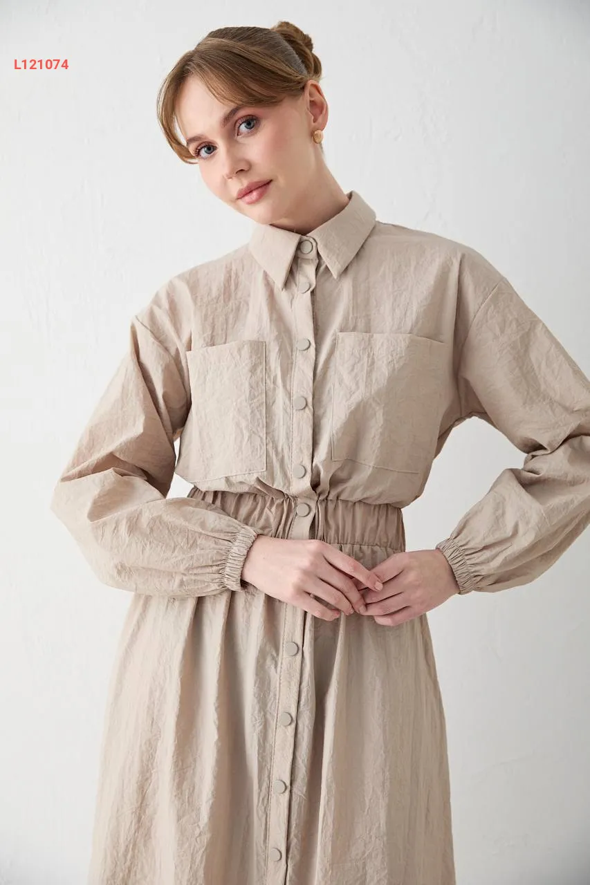 فستان باراشوت مطاط عالخصر بأزرار