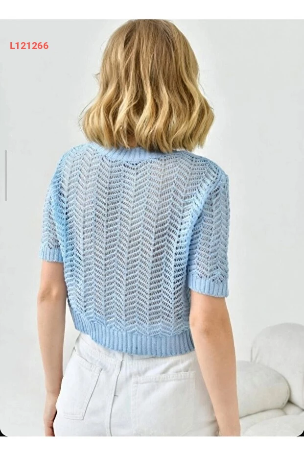 بلوزة تريكو مفتوحة بدور أبيض بياقة دائرية للنساء من بارك كارون 8262Sw