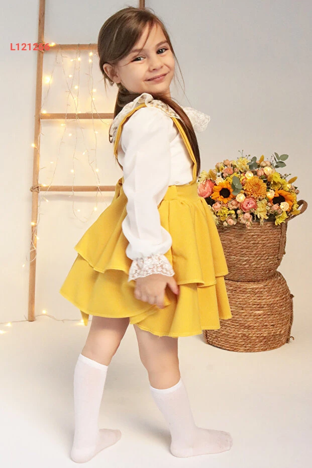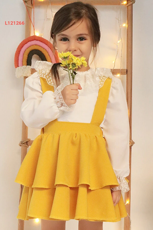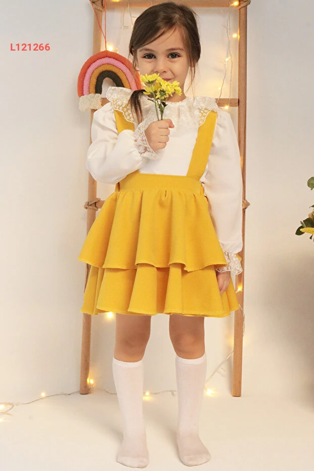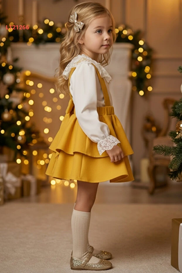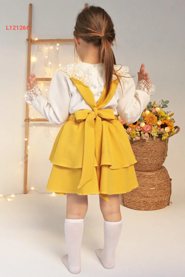 فستان هيلين الأصفر للأطفال مع بلوزة دانتيل طويلة الأكمام - مجموعة رائعة ليوم 29 أكتوبر