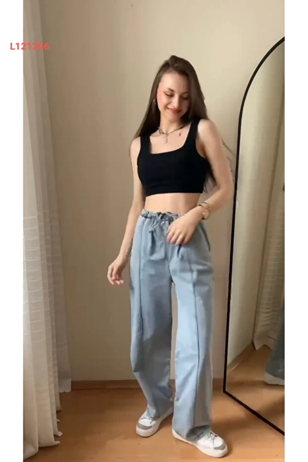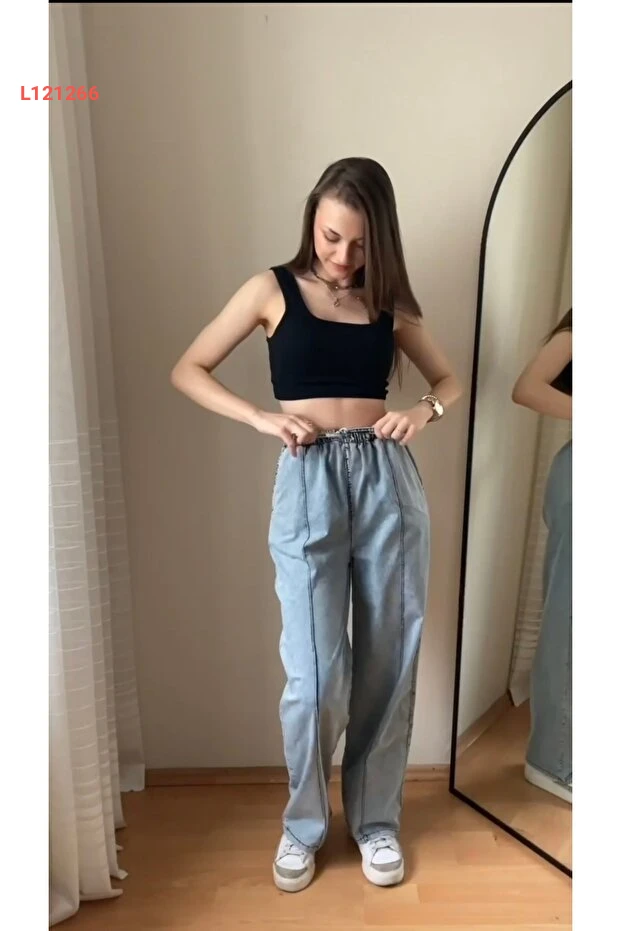 بنطال جينز فضفاض متوسط السماكة مع خصر مطاطي من باس آند باس 2504