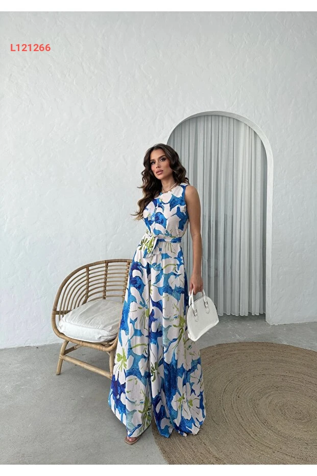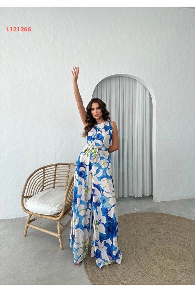 Patreon Mavi Desen İspanyol Kuşaklı Tasarım Tulum