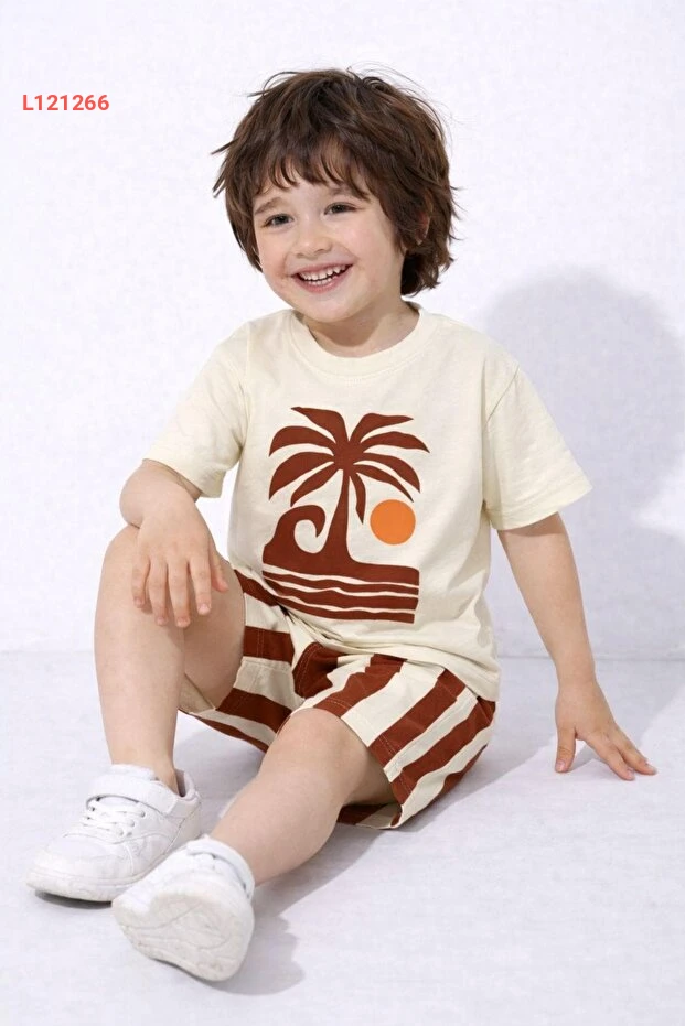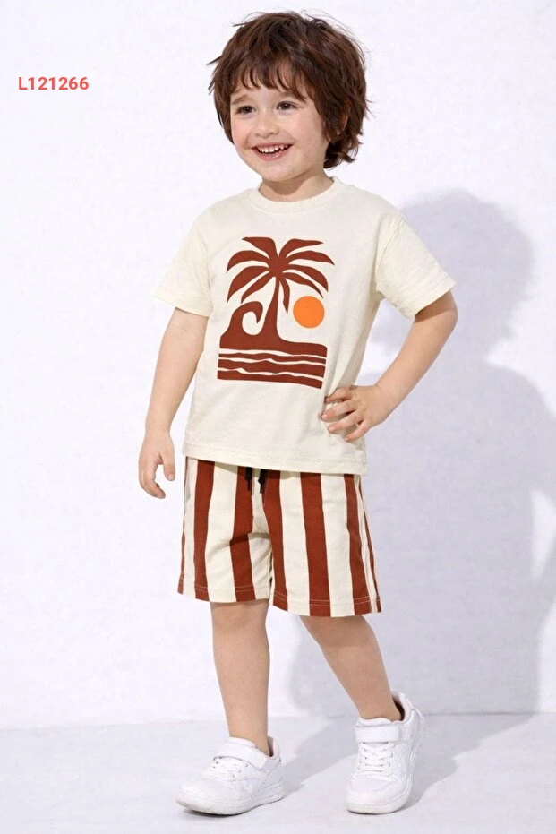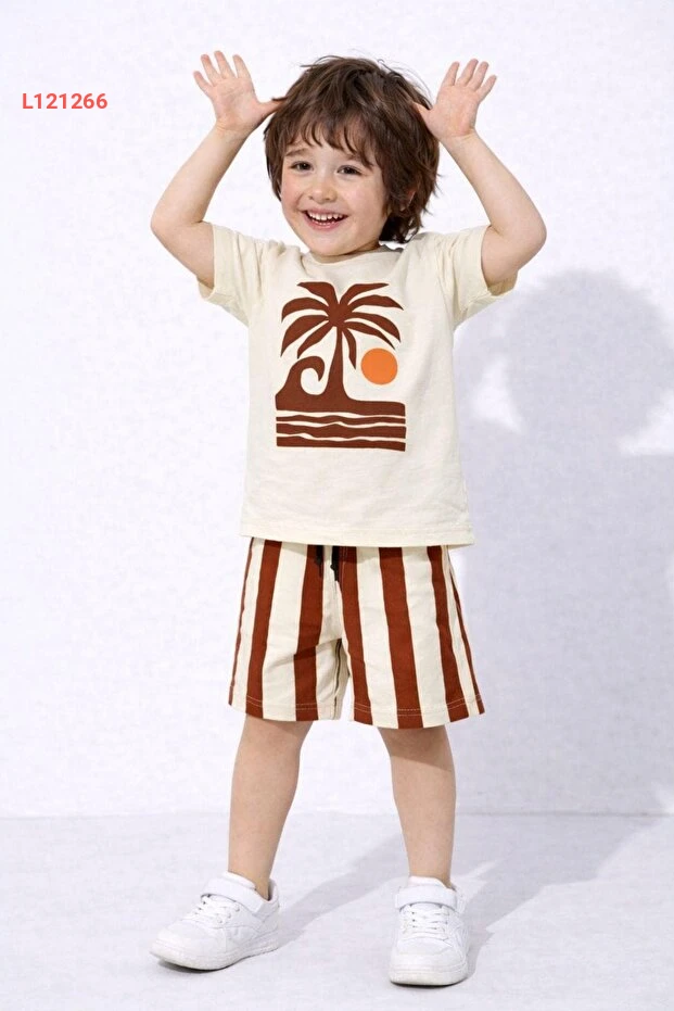 استمتع بإطلالة صيفية رائعة مع مجموعة Patriko الجديدة للأطفال! تتضمن هذه الطقم الجذاب شورتًا بتصميم أنيق مزين بأشجار النخيل وقمصان مخططة تجمع بين الراحة والأناقة. مثالي للعب في الهواء الطلق أو نزهات العطلة، مما يضمن لطفلك الراحة والأناقة في كل مكان!
