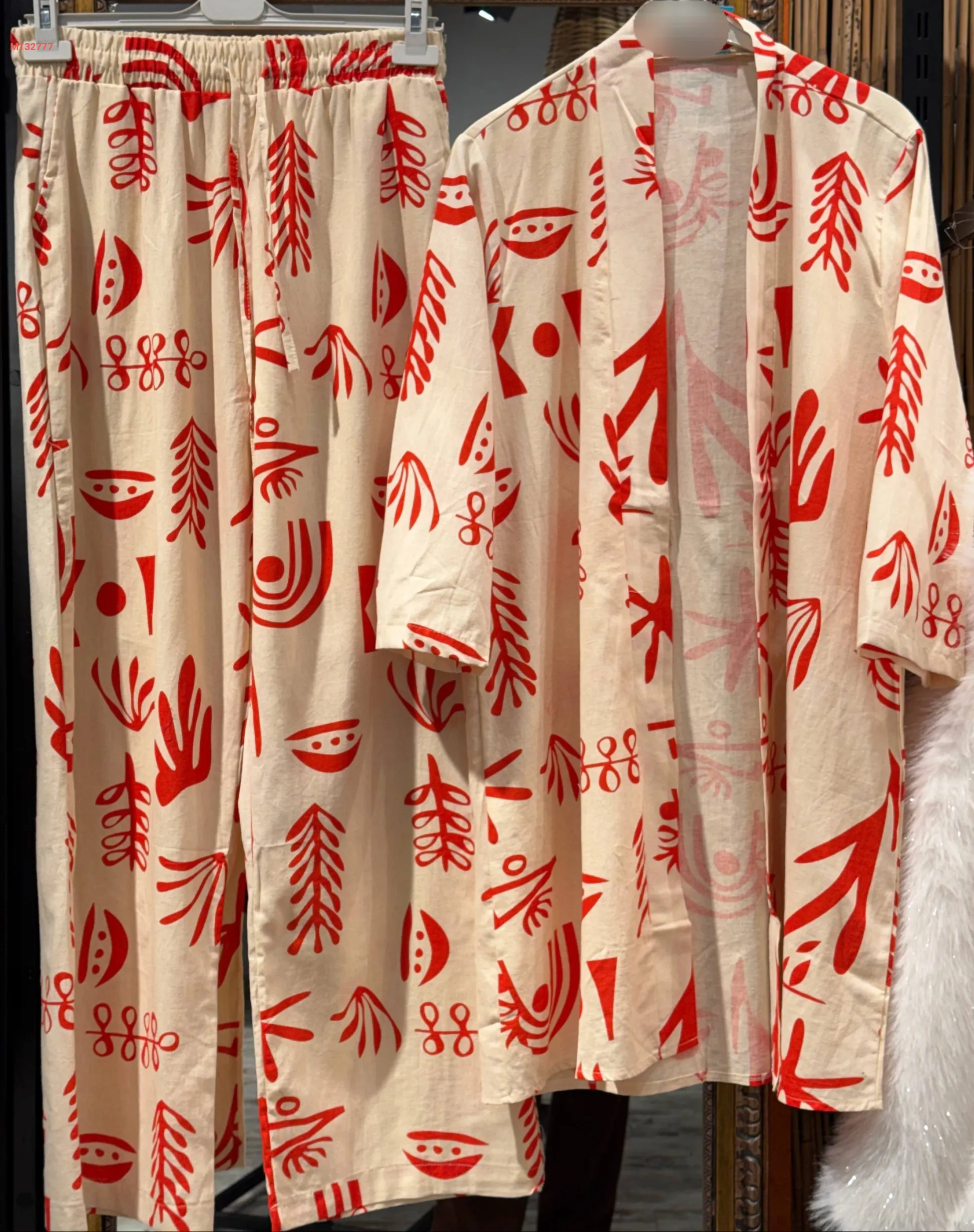 طقم بنطال منقوش مع كيمون