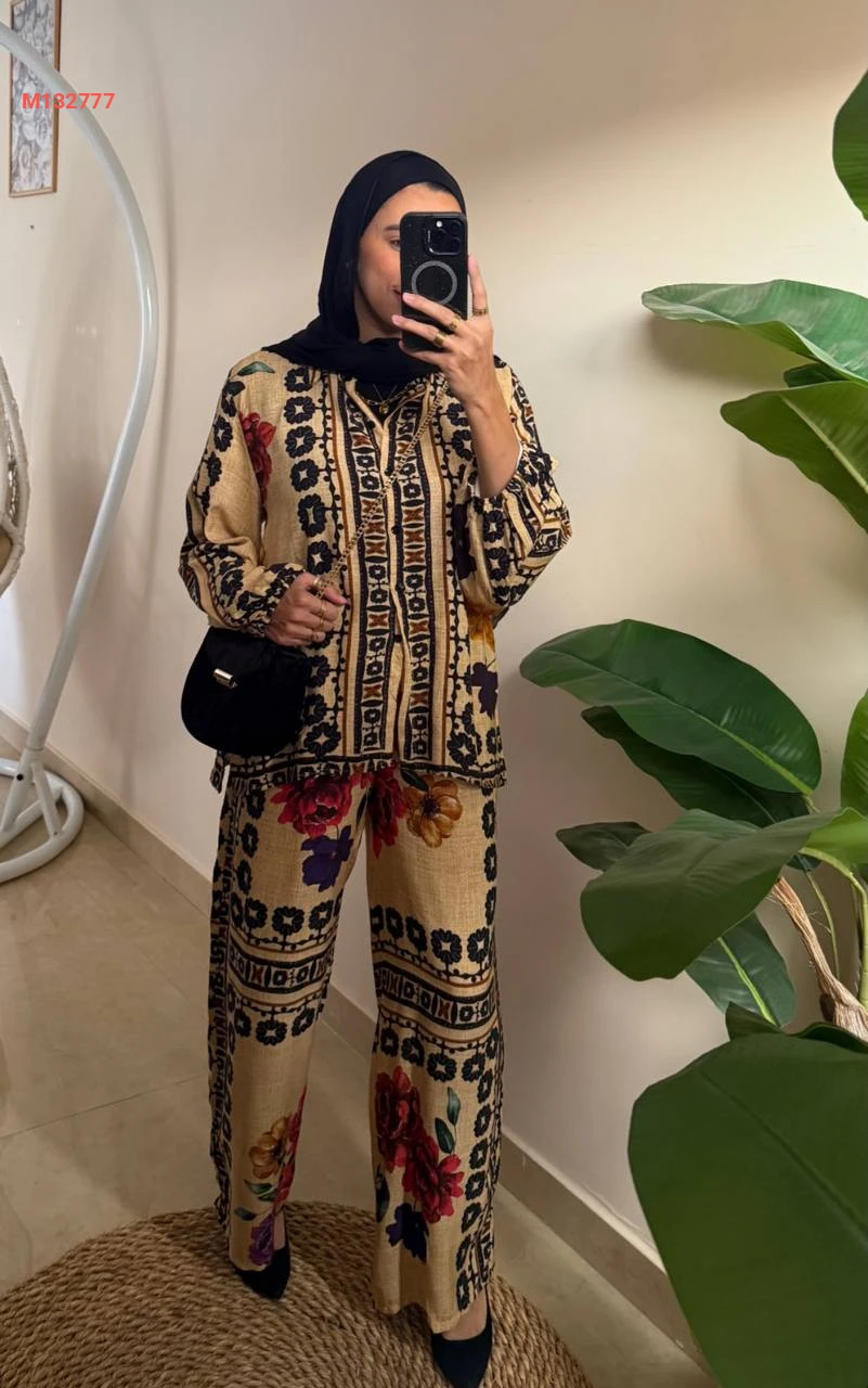 طقم بنطال منقوش مع قميص