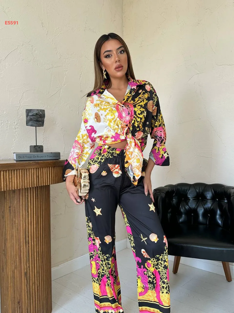طقم بنطال منقوش مع قميص