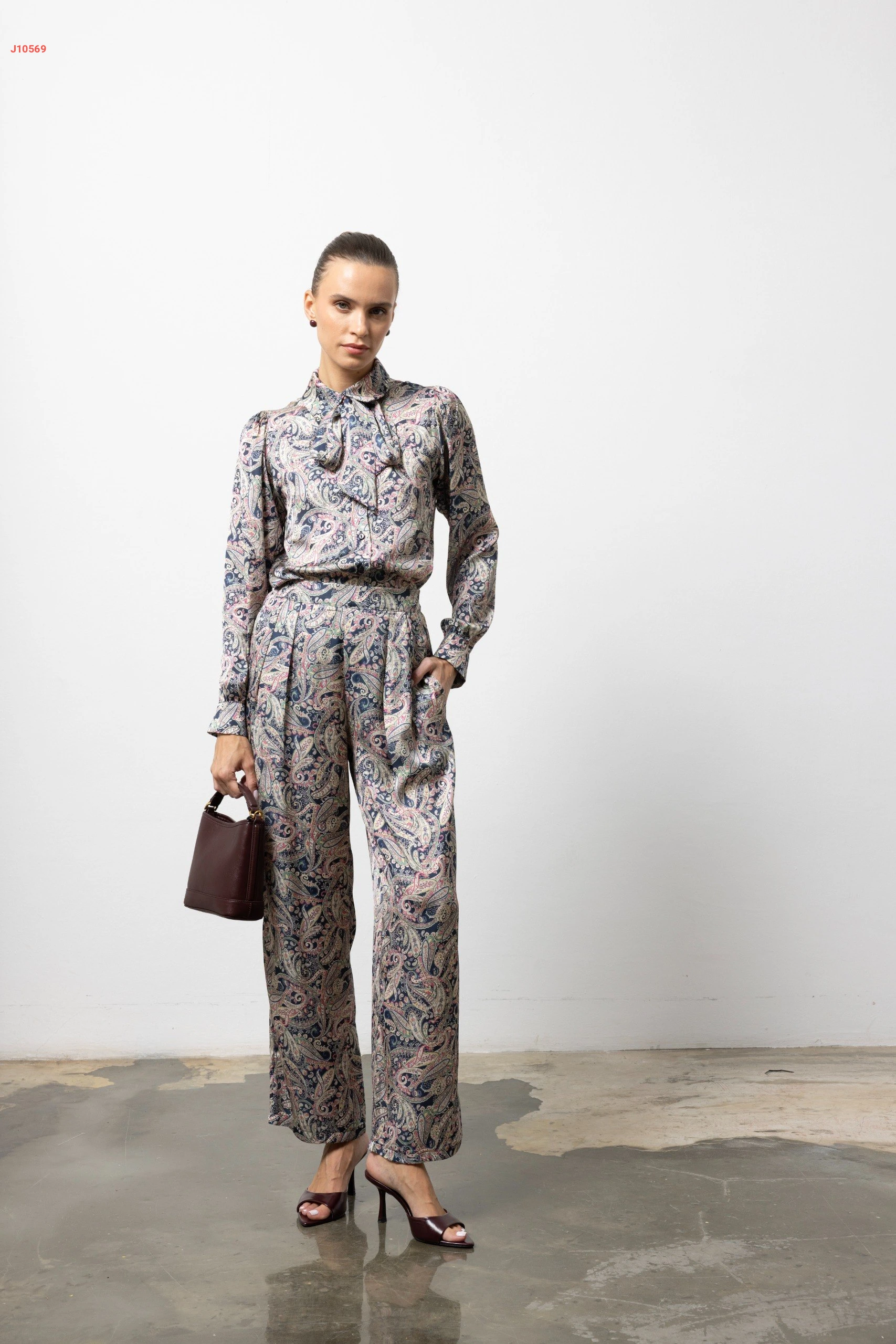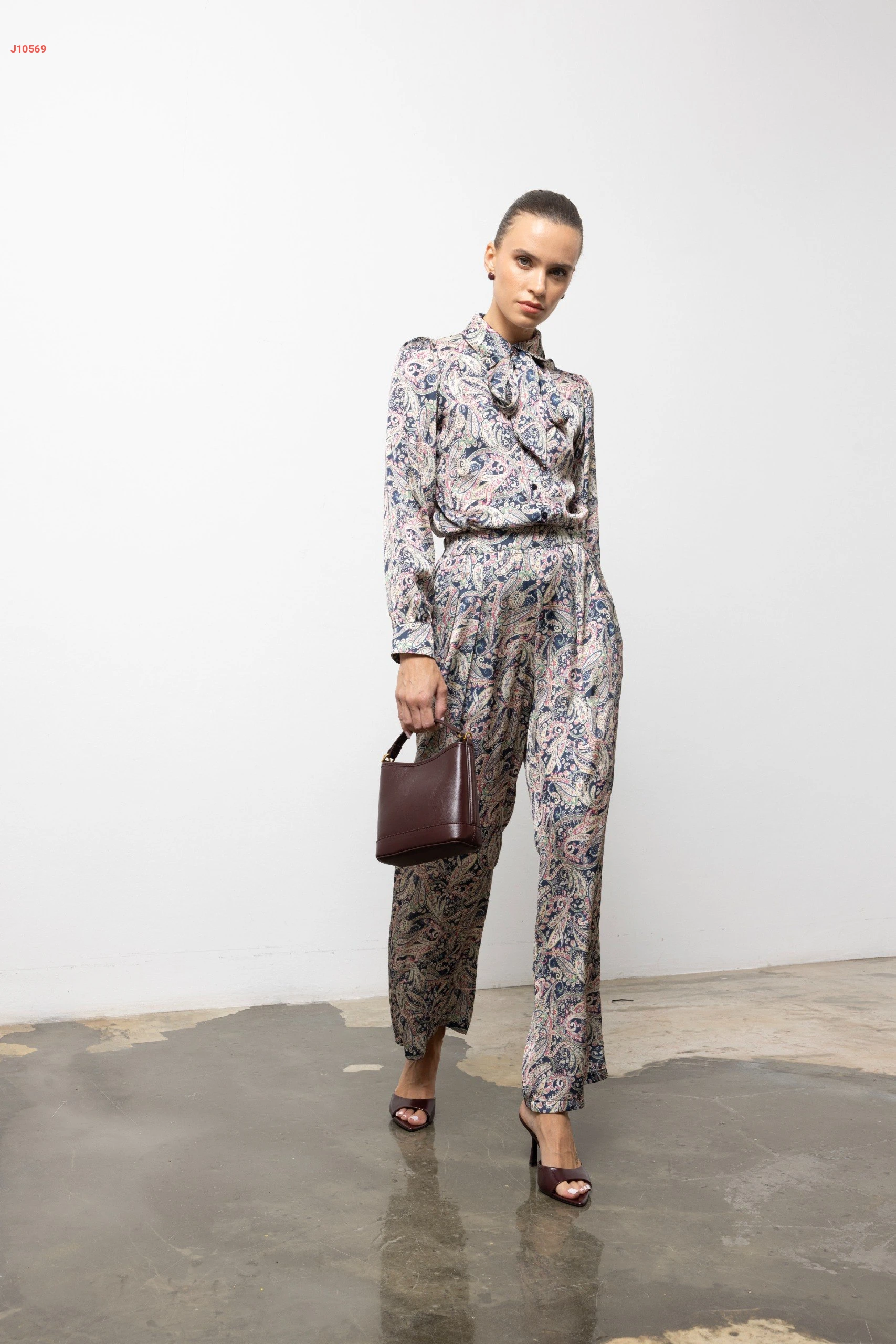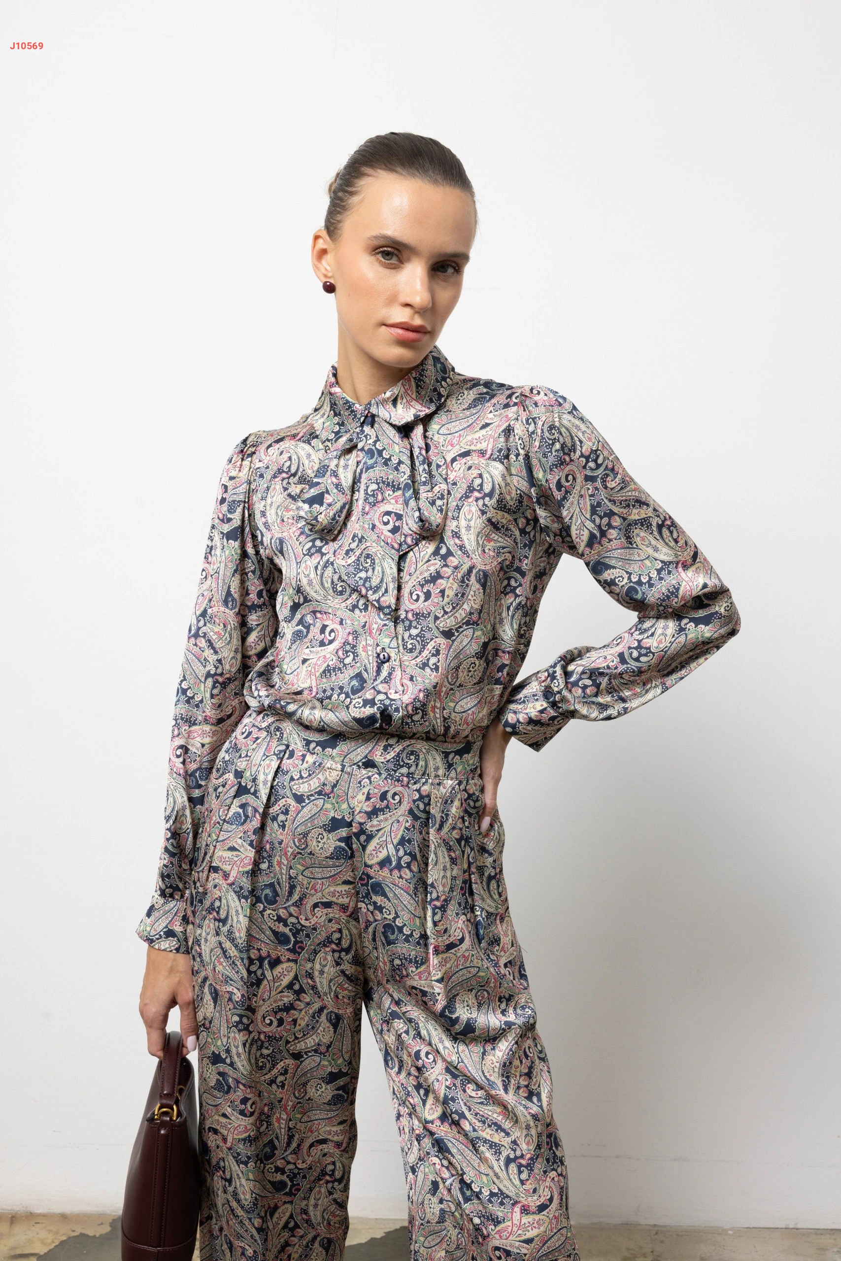 طقم بنطال منقوش مع قميص بربطة عنق