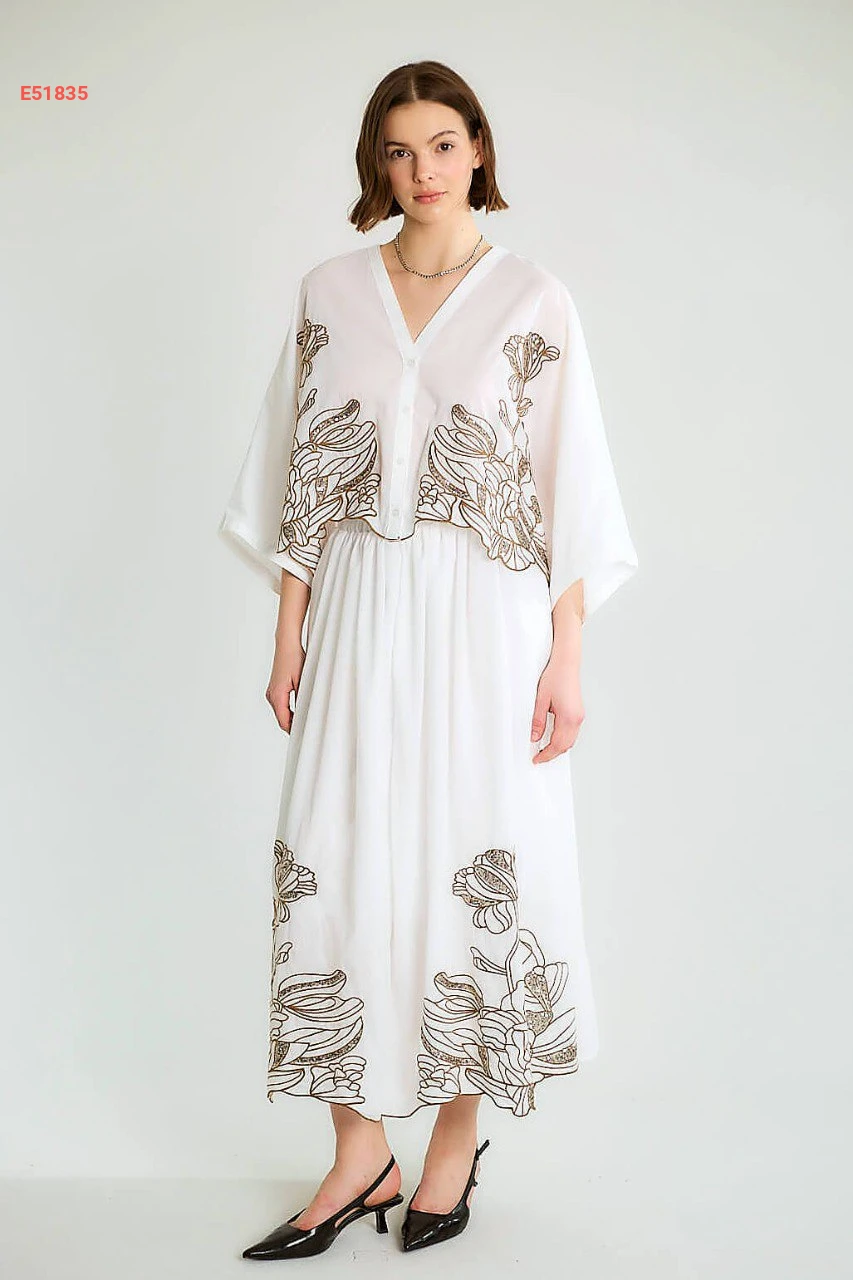 طقم تنورة منقوش مع قميص
