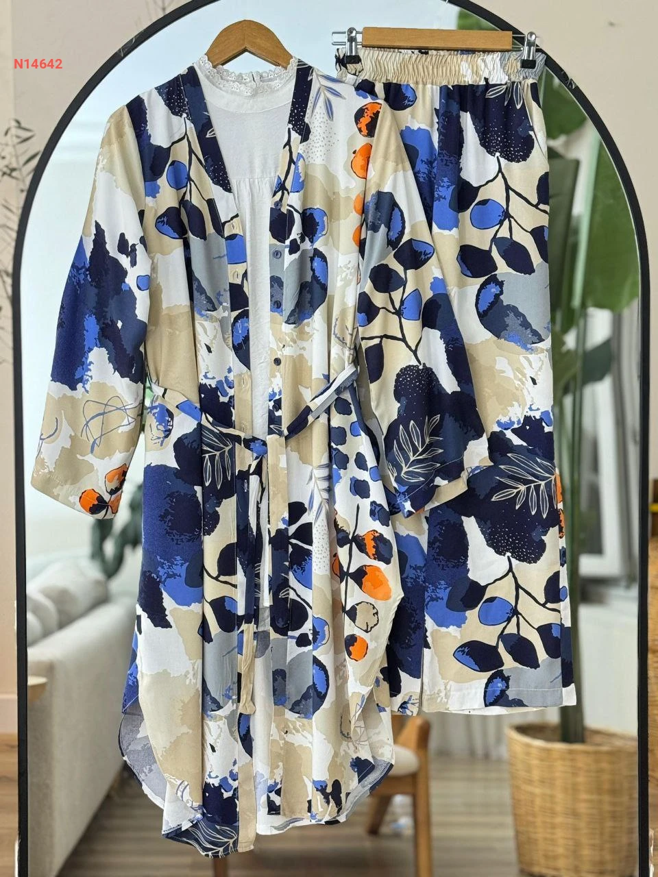 طقم بنطال منقوش مع قميص واسع