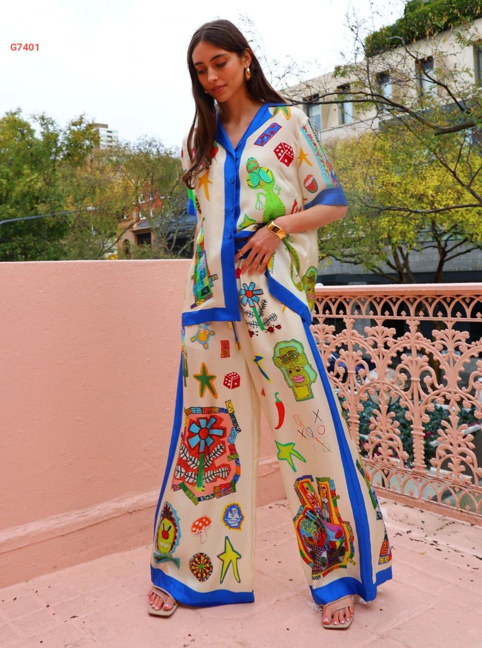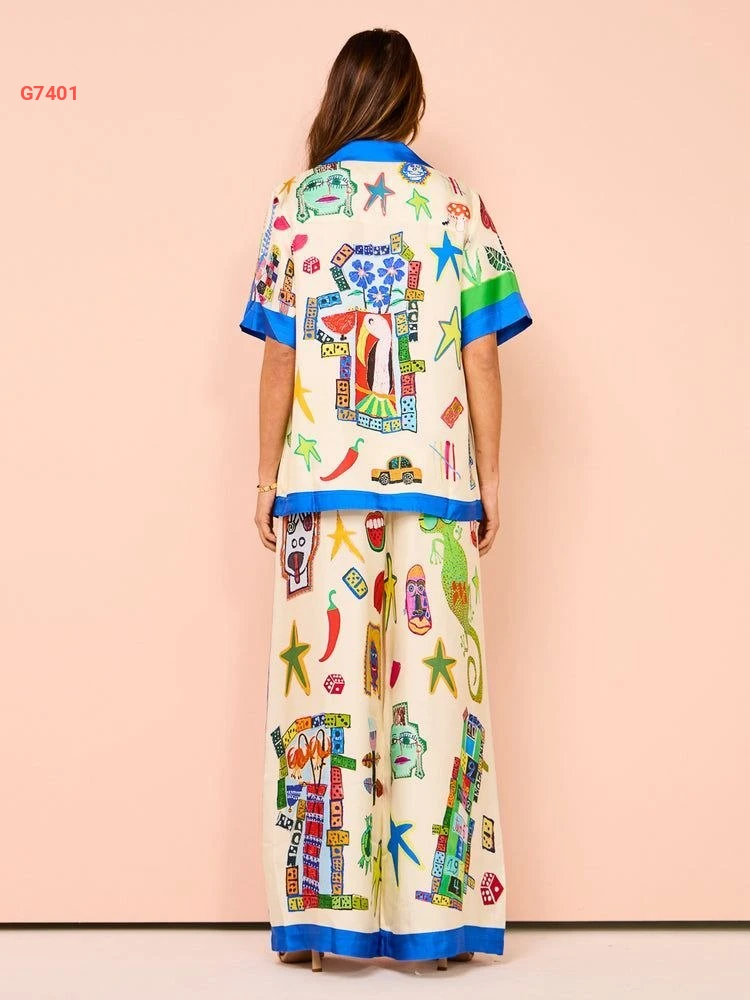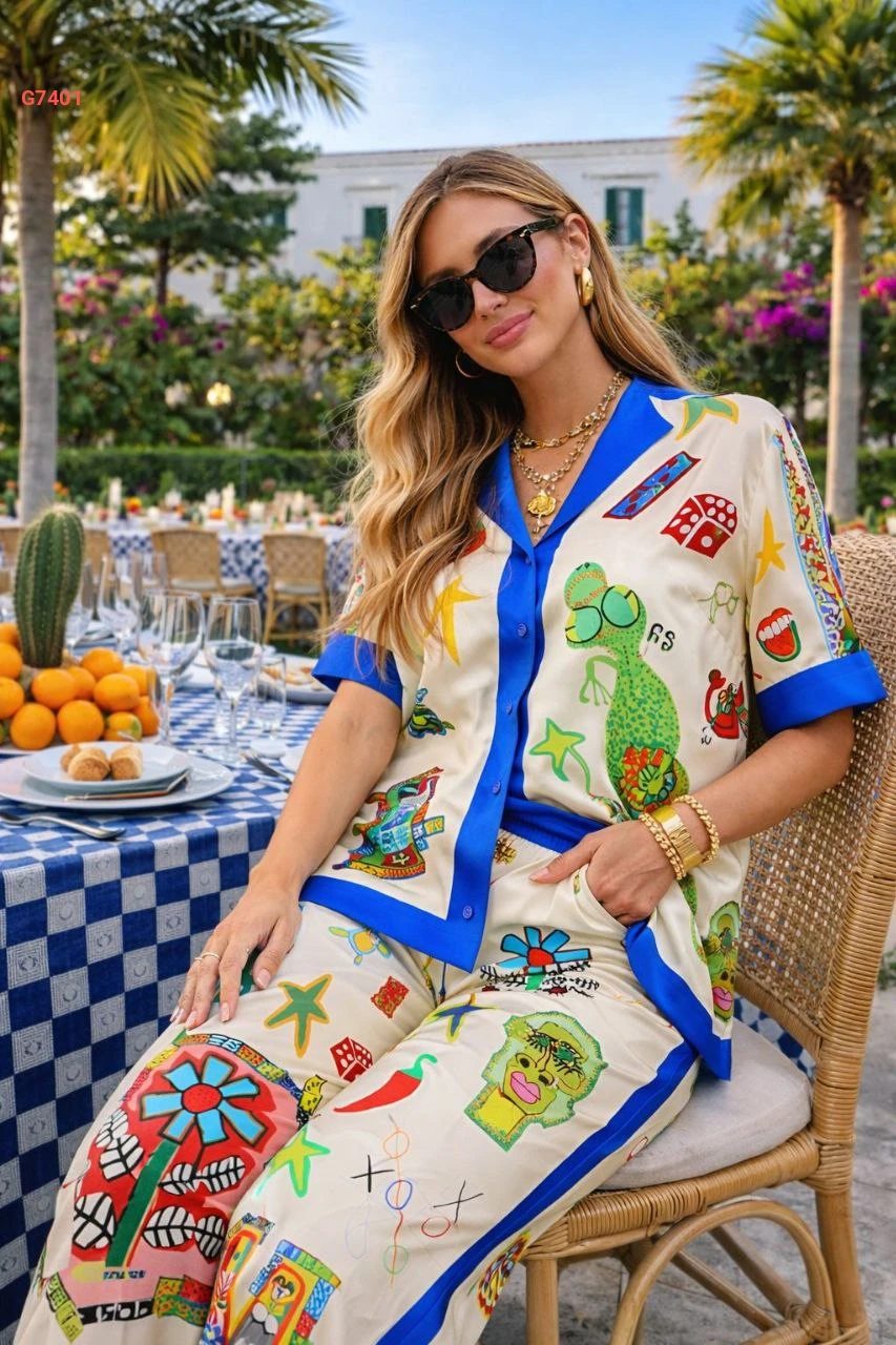 طقم بنطال منقوش مع قميص