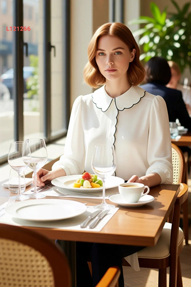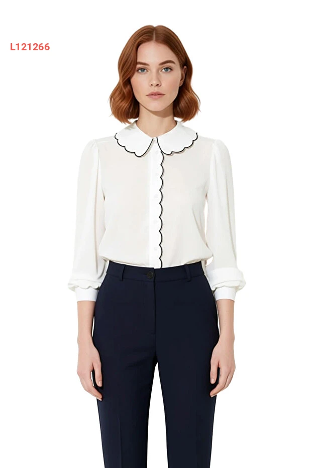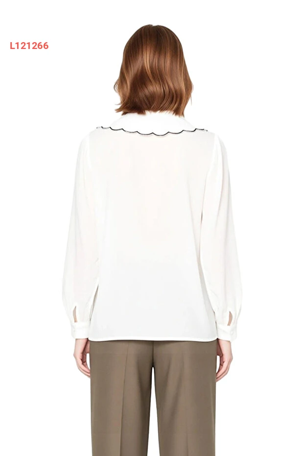 قميص نسائي بأكمام طويلة وقصة عادية مع تفاصيل ياقة بيبي من مجموعة باي باي
