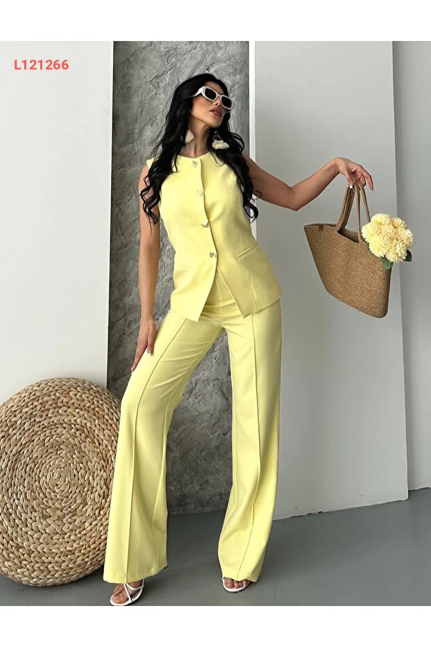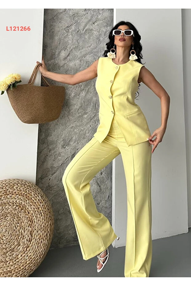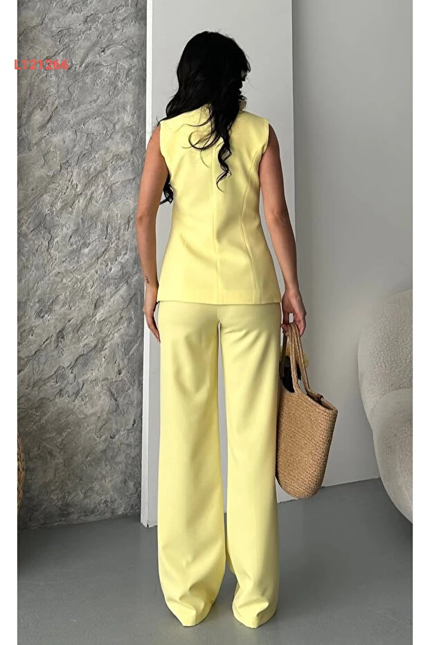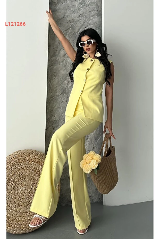 استمتع بتألقك مع طقم السروال والسترة الرائع باللون الأصفر من Pembekurdelem. يتميز التصميم الجذاب بالأزرار الأنيقة التي تضيف لمسة عصرية، مما يجعله خياراً مثالياً للظهور بمظهر أنيق ومريح في جميع المناسبات. اجعلي إطلالتك متألقة مع هذا الطقم الفريد الذي يجمع بين الأناقة والراحة.