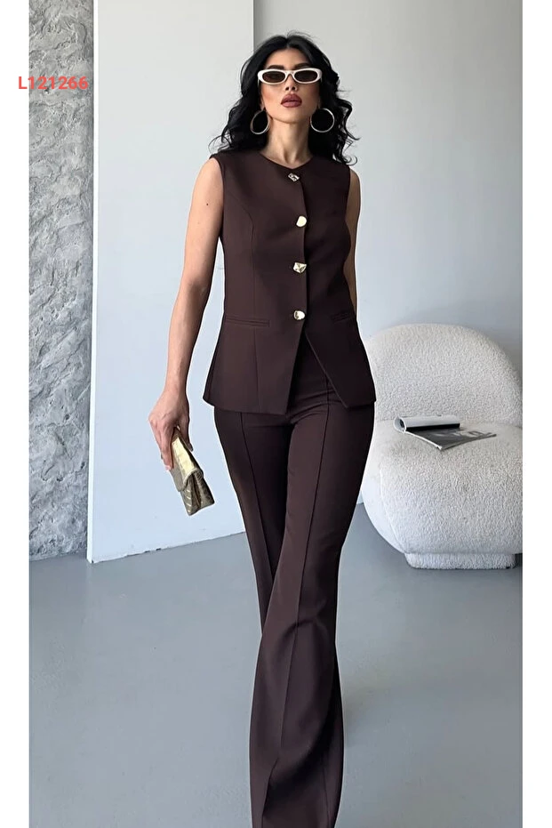 استمتعي بأناقتك مع طقم "Pembekurdelem" الذي يتكون من سترة مزينة بأزرار وسروال بتصميم عصري باللون البني. يتميز القماش بجودته العالية وراحته، مما يجعله الخيار المثالي لمظهر أنيق ومريح في مختلف المناسبة. اجعلي كل إطلالة لكِ مميزة وجذابة مع هذا الطقم الذي يجمع بين الأناقة والعملية.