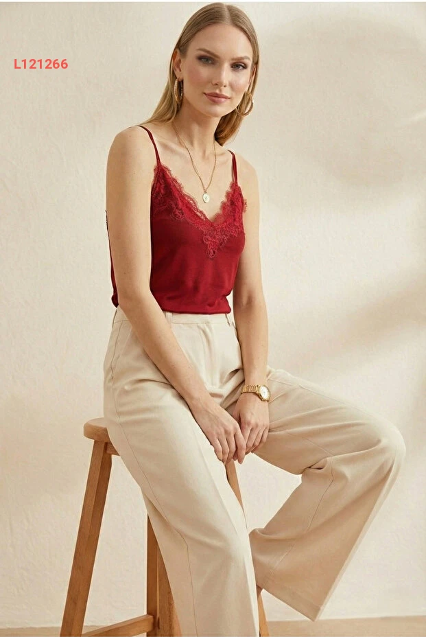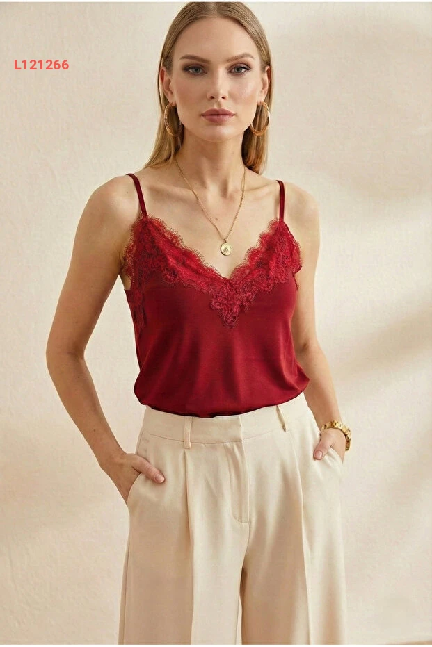 اكتشفي أنوثتك مع بلوزة "Peralist" ذات التفاصيل الدانتيلية البوردو الجذابة. تصميمها العصري مع حمالات قابلة للتعديل يضمن الراحة والأناقة في كل مناسبة. ارتديها مع بنطال جينز أو تنورة لتمنحي إطلالتك لمسة من الفخامة الساحرة.