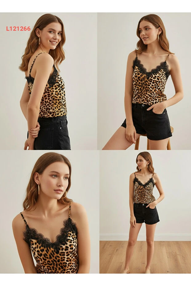 ارتقِ بأناقتك مع بلوزة "Peralist" النسائية، المزينة بتفاصيل الدانتيل العصرية ونقشة الفهد الجذابة. تصميمها الفريد مع حمالات قابلة للتعديل يضمن لكِ الراحة والأناقة في كل مناسبة، مما يجعلها الخيار المثالي لإطلالاتك اليومية أو السهرات الخاصة.
