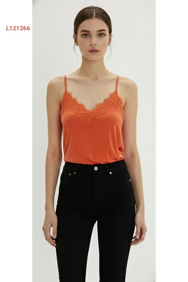 اكتشفي سحر الأنوثة مع بلوزة "Peralist" بالألوان البرتقالية الجذابة، التي تتميز بتفاصيل الدانتيل الأنيقة. تصميمها العصري مع حمالات قابلة للتعديل يضمن لكِ الراحة والأناقة في كل مناسبة، مما يجعلها خياراً مثالياً لإضفاء لمسة أنثوية على إطلالتكِ اليومية.