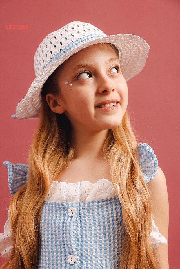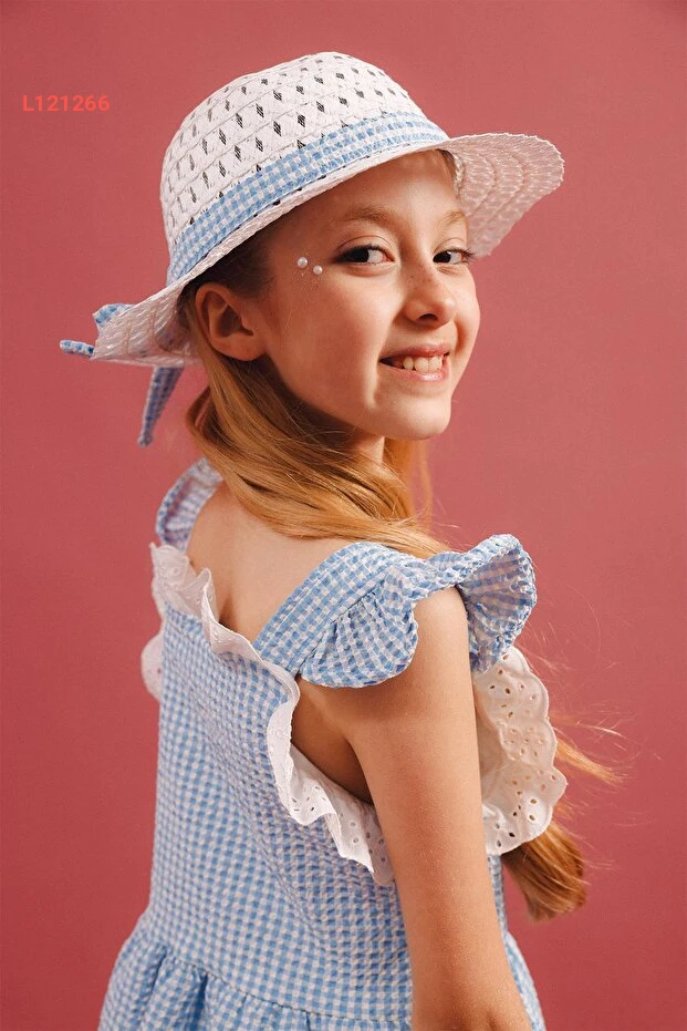 فستان بناتي مزين بنقشة بيتي مع قبعة بطبقة قطنية مريحة
