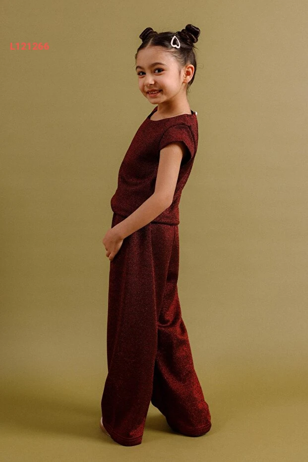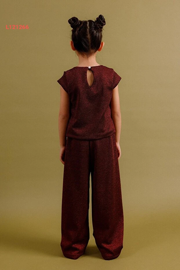طقم ملابس بنت بلمسات لامعة - بلوزة وبنطال فضفاض للاحتفالات الخاصة