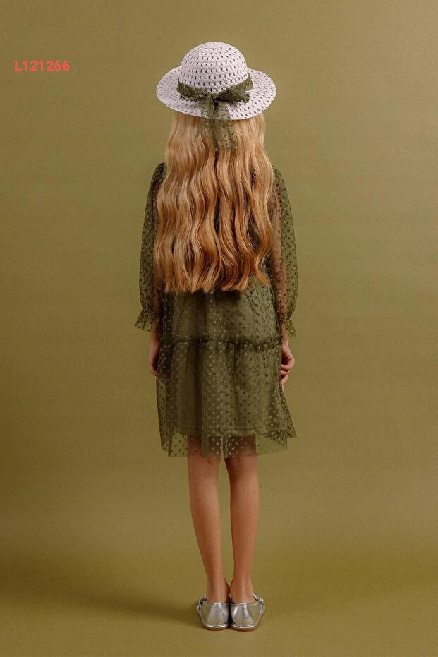 فستان تول مزين بقبعة للأطفال - مجموعة المناسبة الخاصة