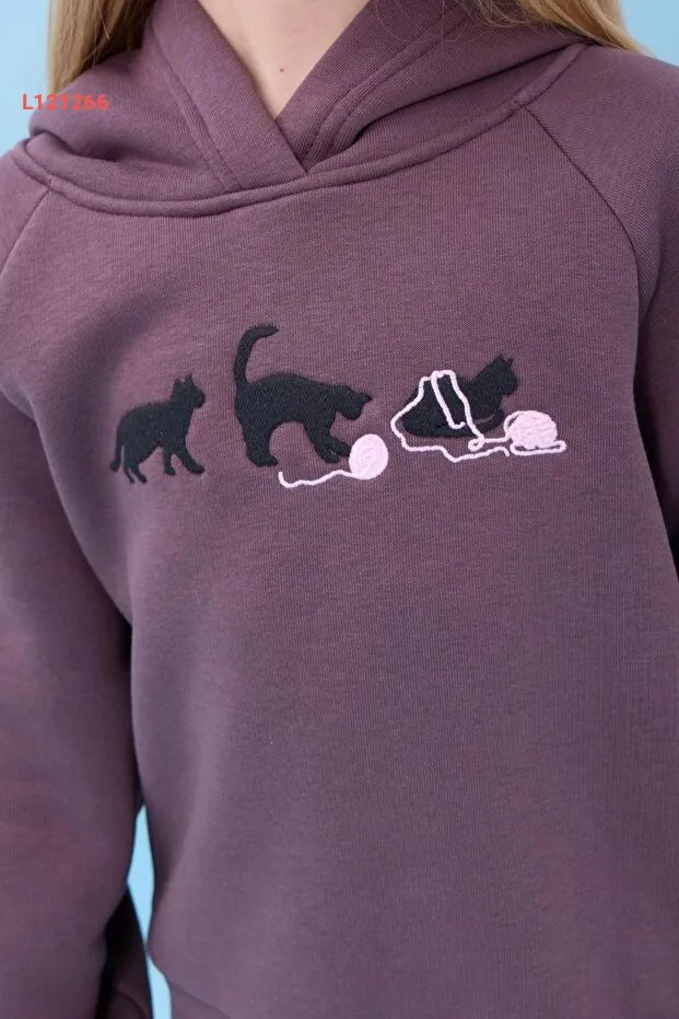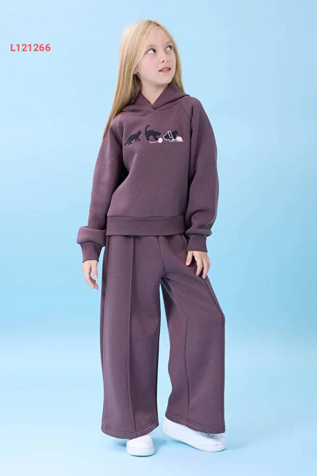 استمتعي بأناقة وراحة في الشتاء مع مجموعة بيريندي للبنات، التي تأتي بلون الباذنجان الجذاب! تتميز هذه المجموعة بقلنسوة دافئة وبطانة مصنوعة من الفلان الناعم، بالإضافة إلى تطريز جميل لرسوم القطط، مما يجعلها الخيار المثالي لتوفير الدفء والراحة أثناء اللعب أو الخروج. اجعلي ابنتك تتألق بأناقتها مع هذه المجموعة المتكاملة!