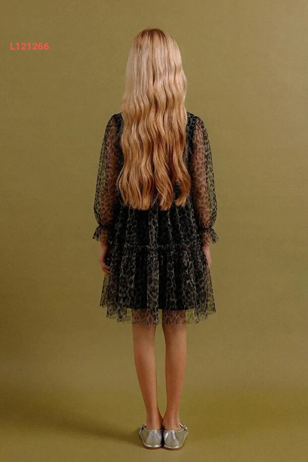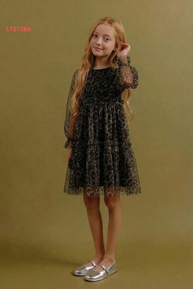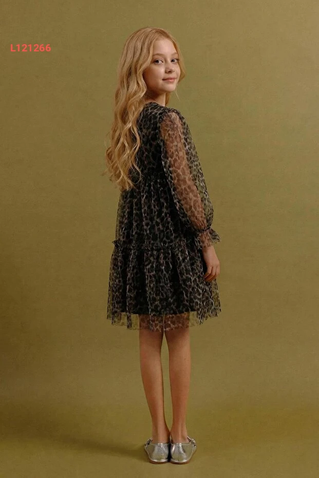 اجعل صغيرتك تتألق بأناقة مع فستان "Perendi" ذو التصميم الفريد من نوعه! يتميز برسمات النمر الجذابة وتفاصيل التول الرقيقة، مما يوفر لها مظهرًا مليئًا بالجاذبية والمرح. مصمم خصيصًا لتقديم الراحة والحركة الحرة، سيصبح هذا الفستان الخيار المثالي لكل مناسبة.