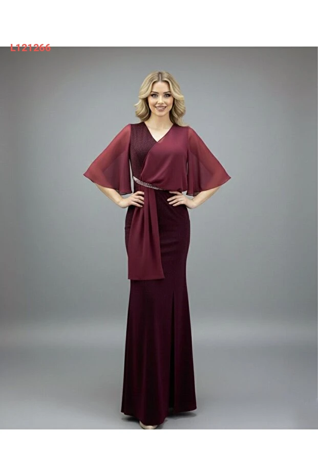 فستان سهرة نسائي مزين بالحزام والتفاصيل الشفافة من "فينيكس"