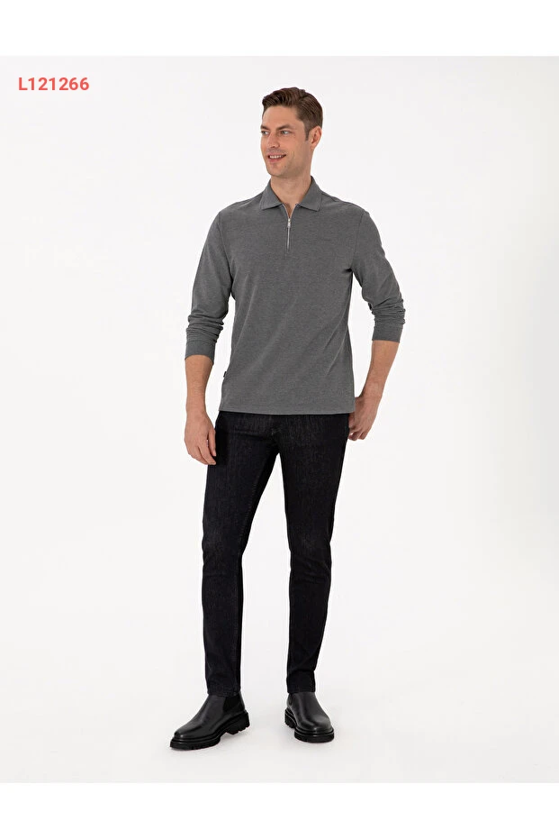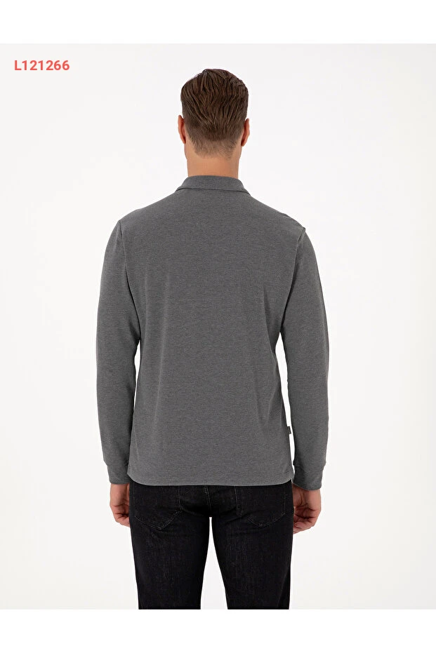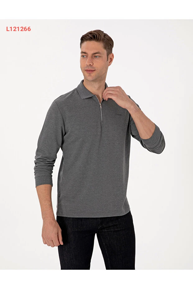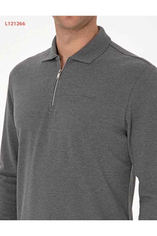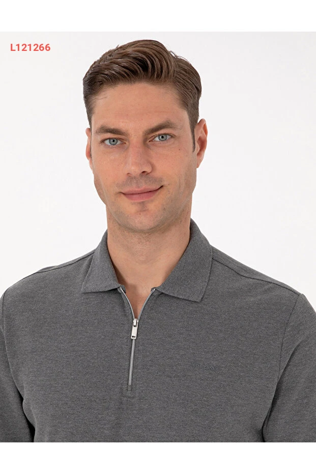 سويت شيرت بيير كاردان بولو ياقه سليم فيت بأزرار غير قابلة للانزلاق - لون رمادي داكن