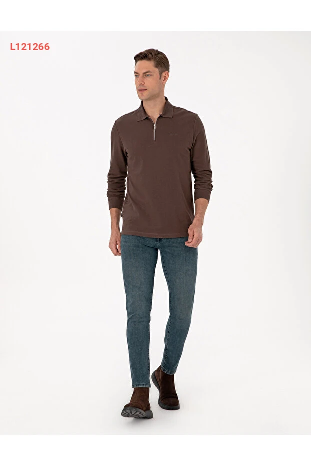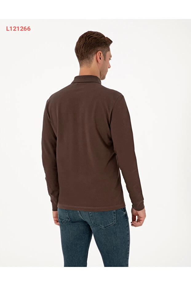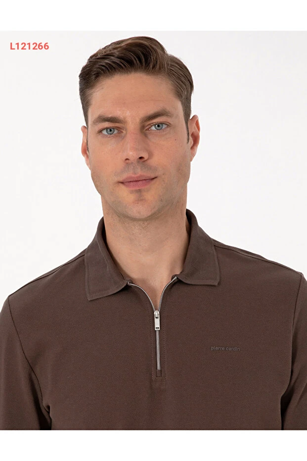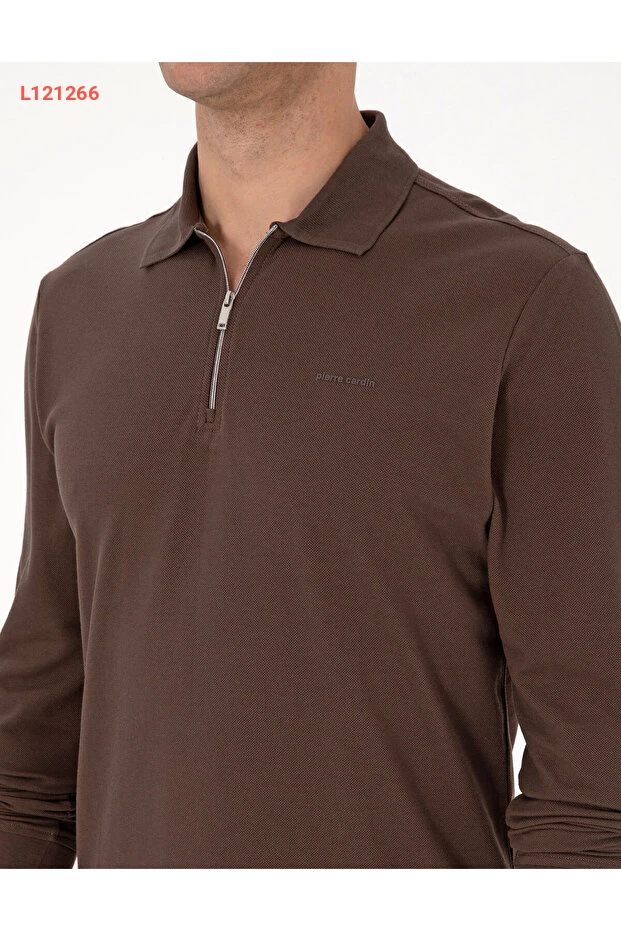 سترة بولو سليم فيت بفَرْزَة عَطَريَّة، بني غامق - بيير كاردان