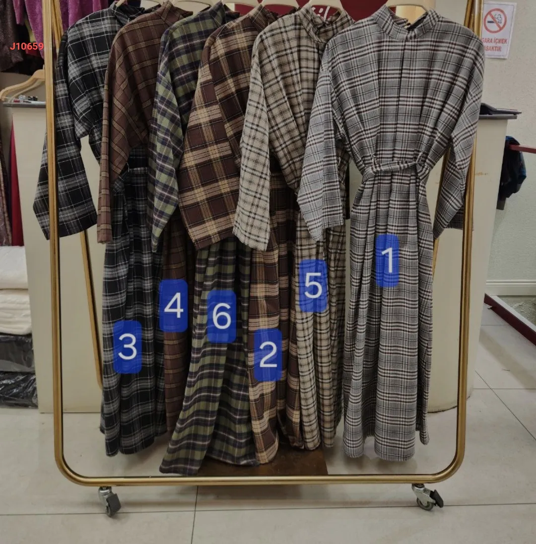 فستان كاروهات ، بسحاب خلفي، ياقة مدورة، مع ربطة خصر