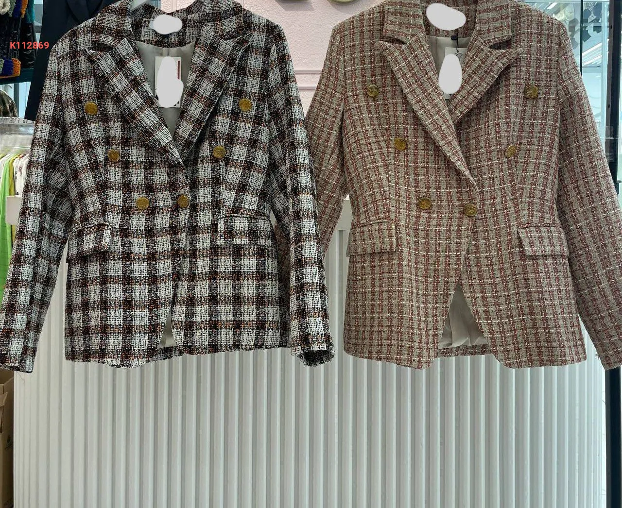 جاكيت كاروهات مزدوج الصدر بأزرار وجيب