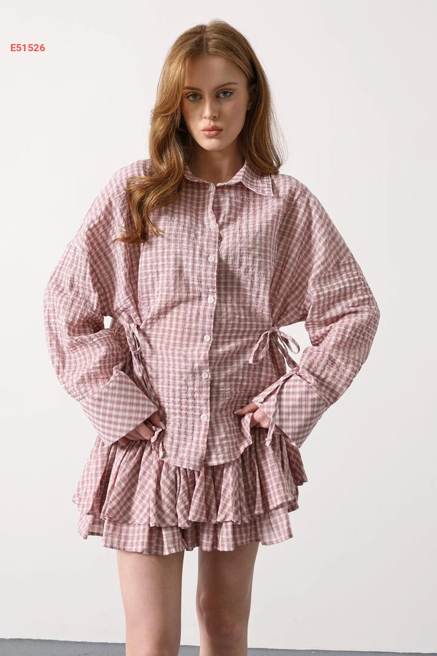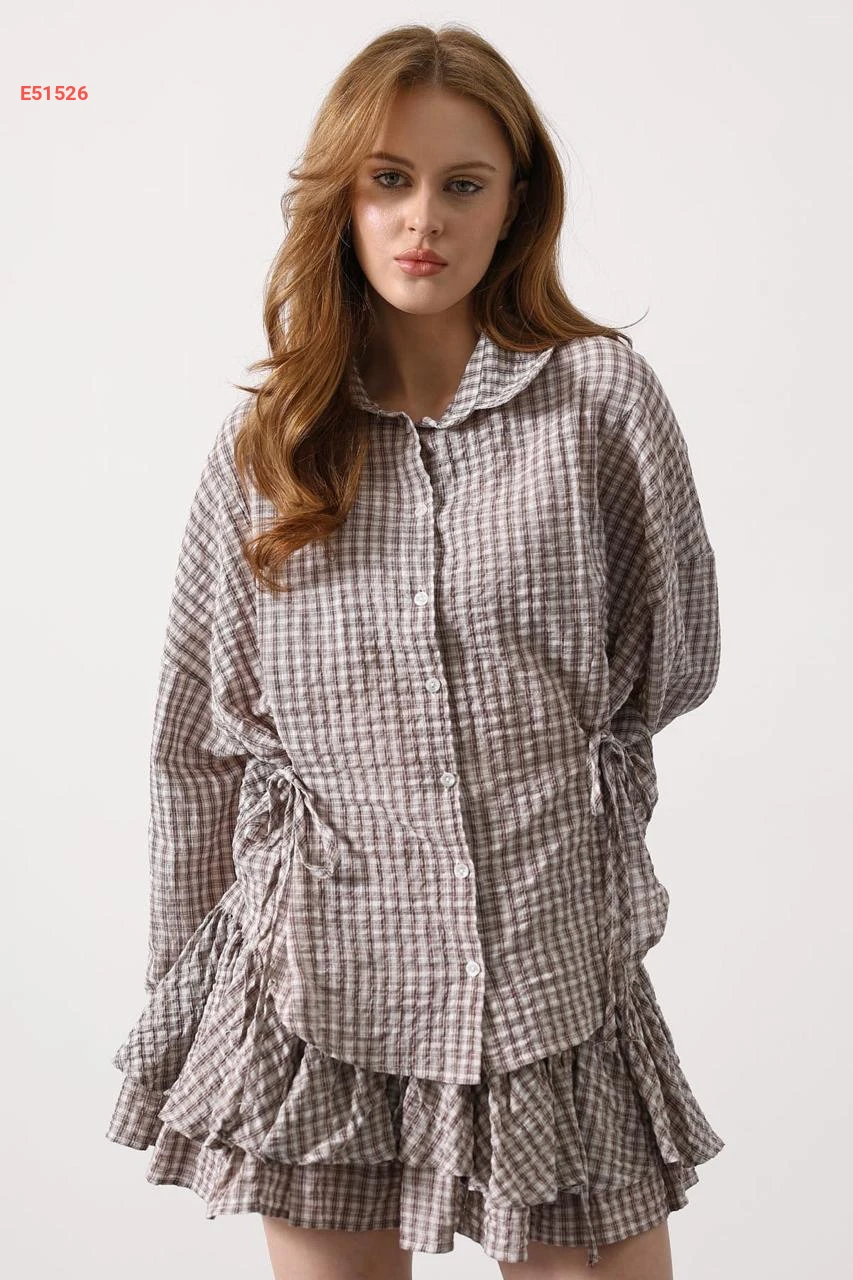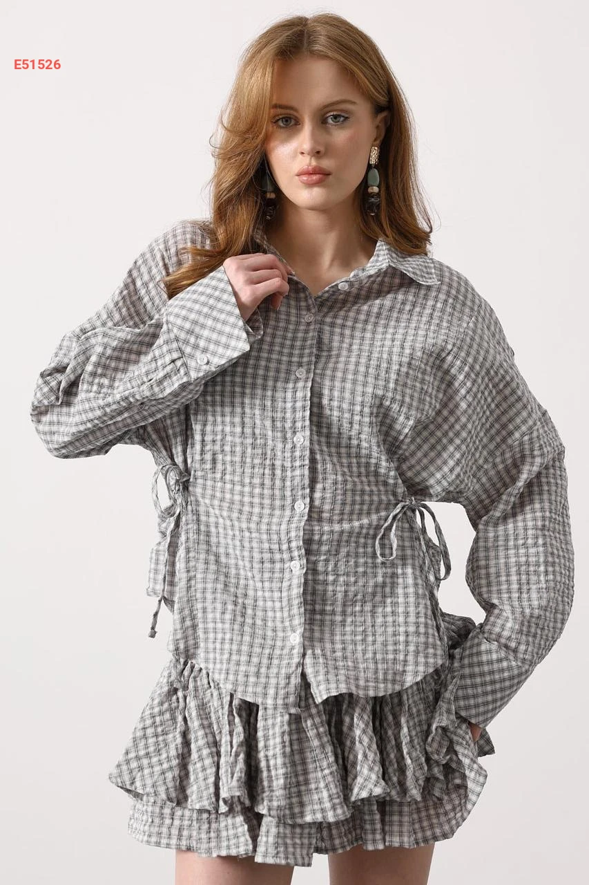 قميص كارو بربطات جانبية عالخصر