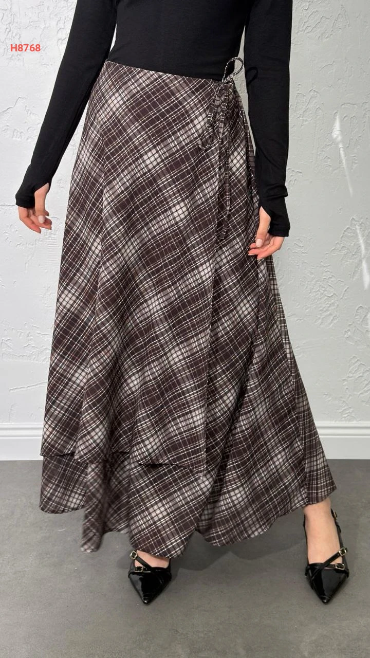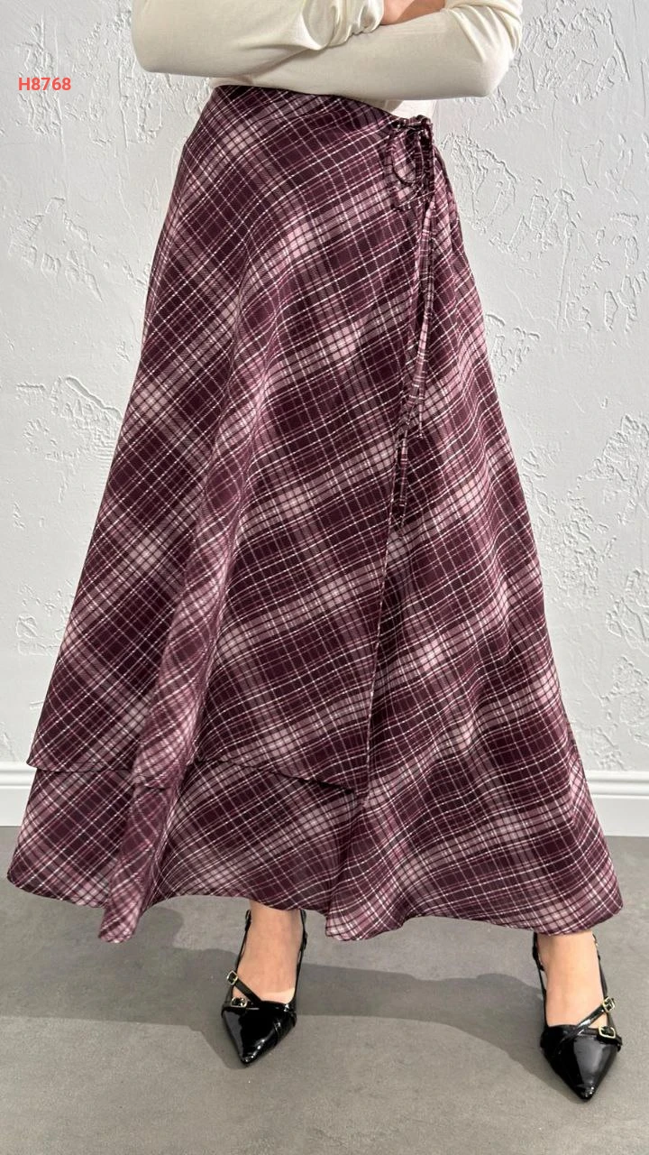 تنورة كاروهات بطبقة ثانية مع ربطة من الخصر