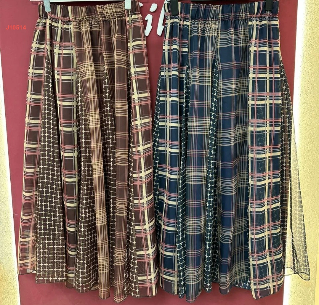 تنورة كاروهات خصر مطاطي