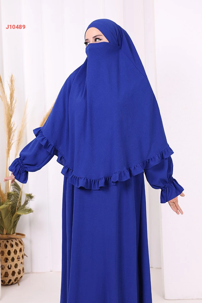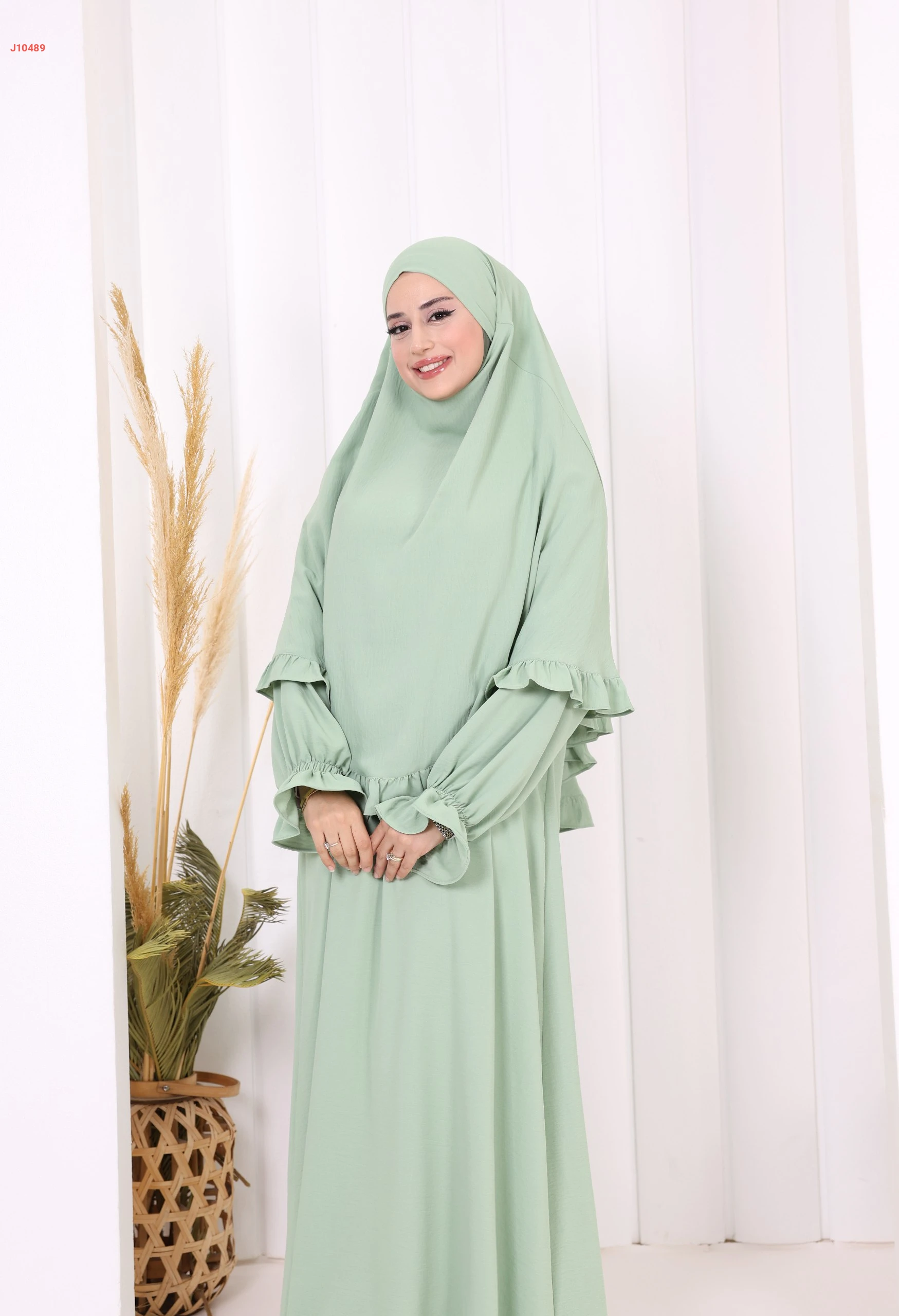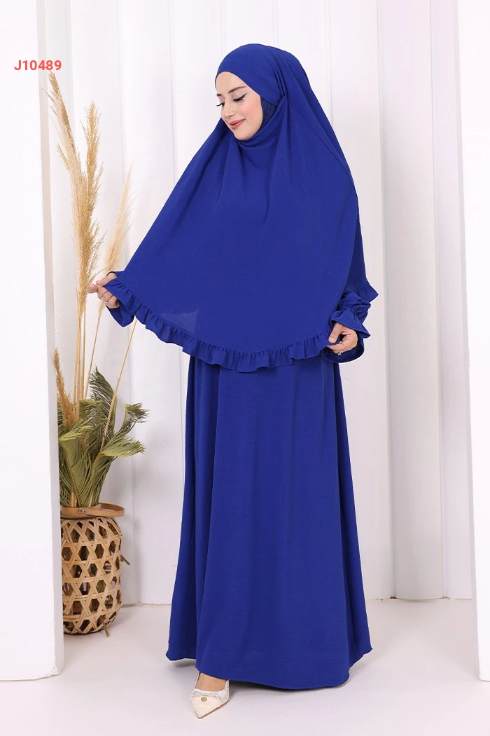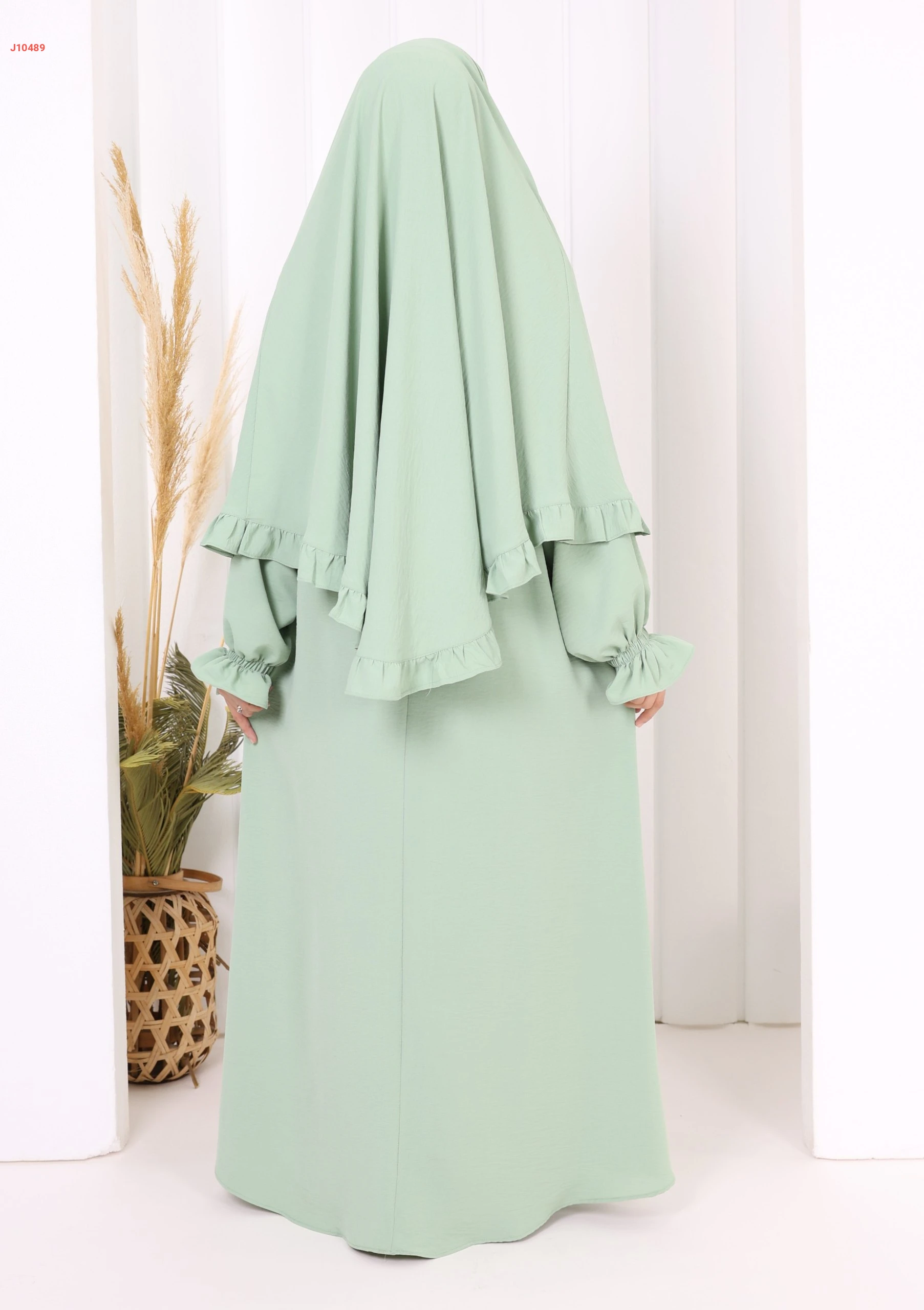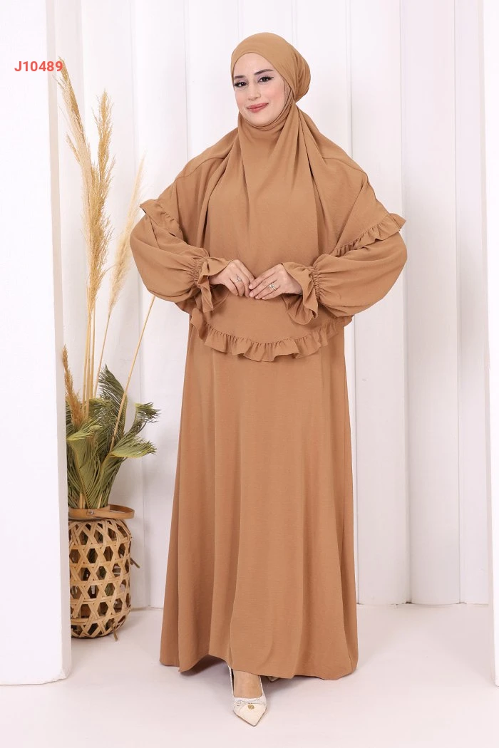 عباية سادة مع غطاء رأس وأكمام مكشكشة