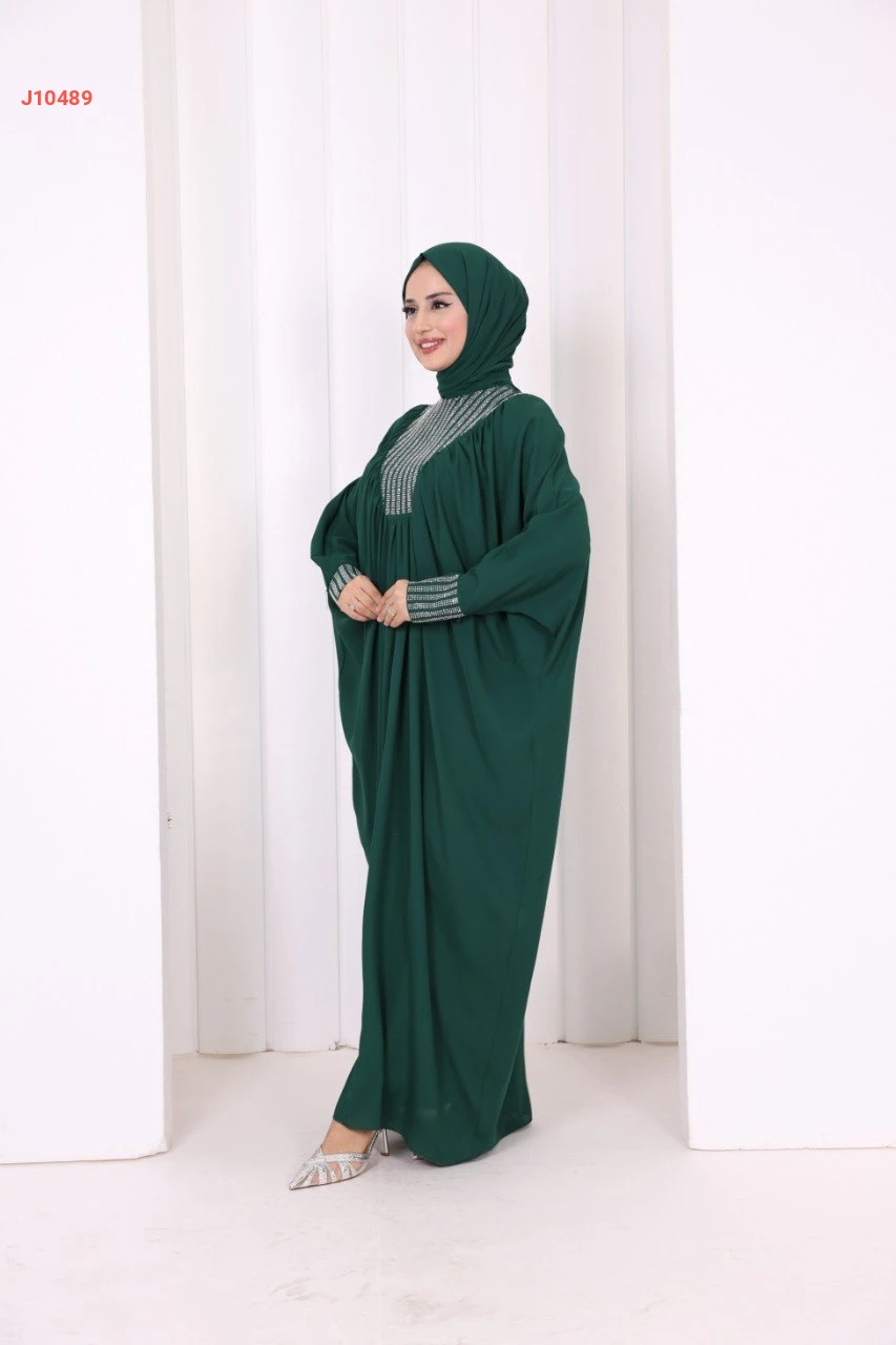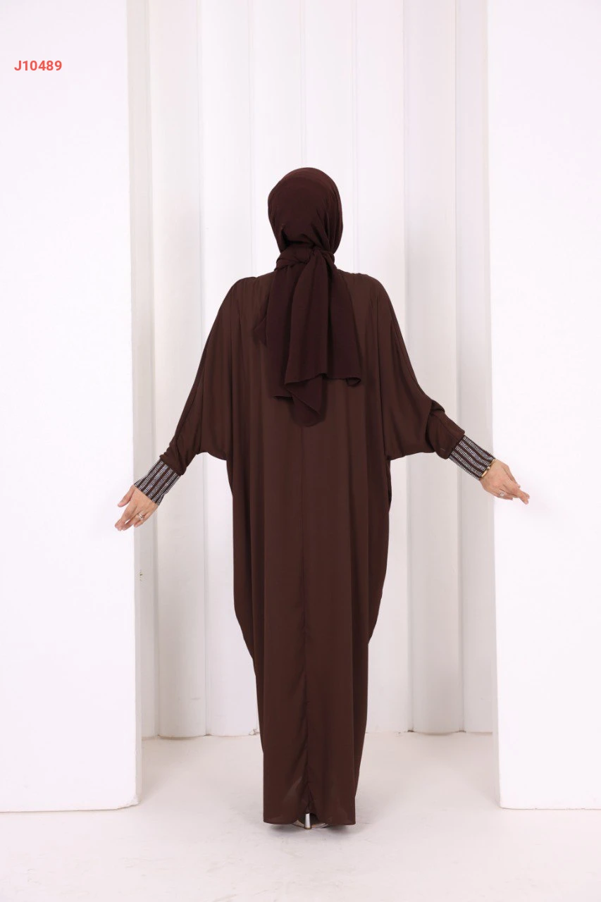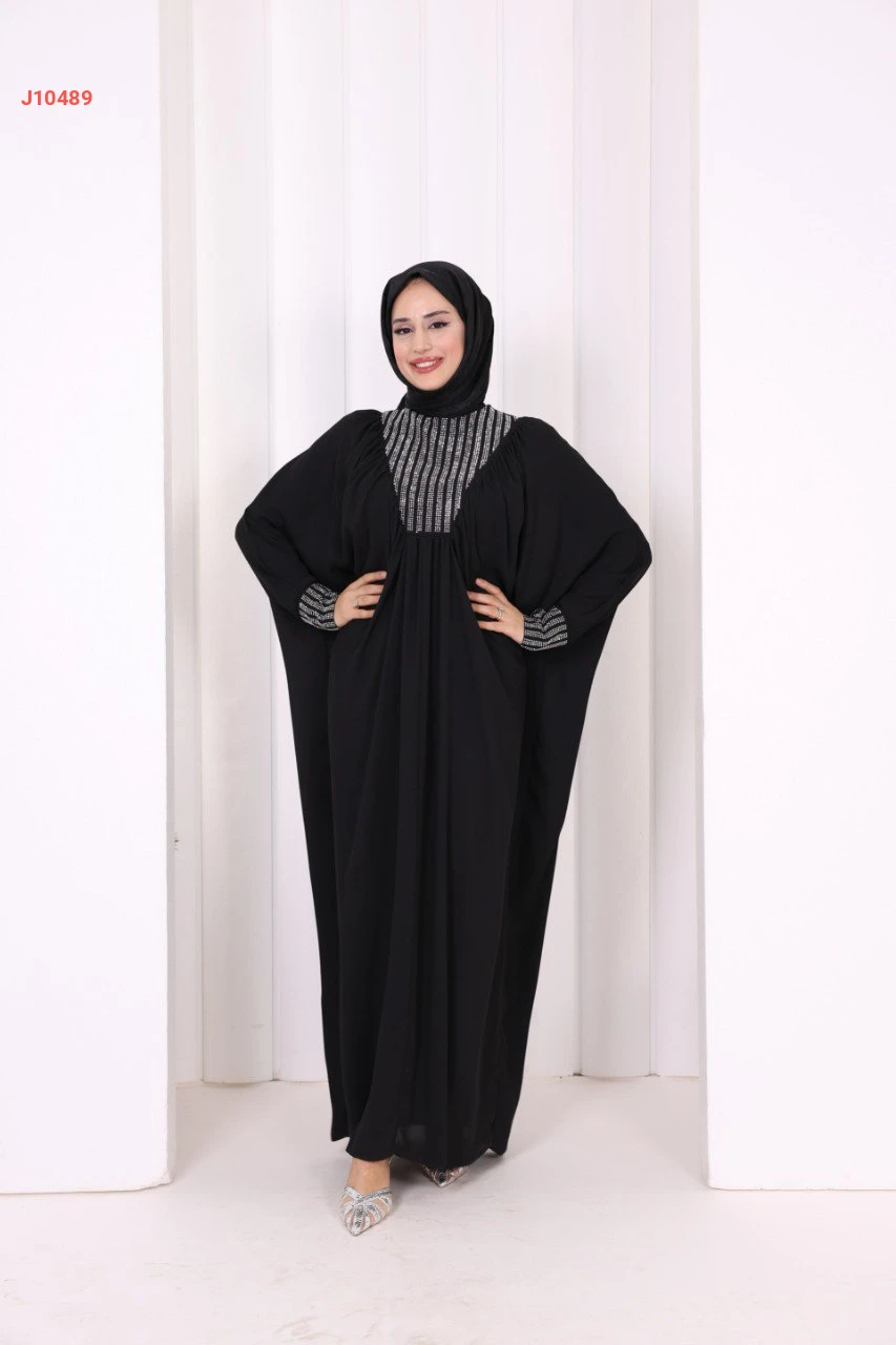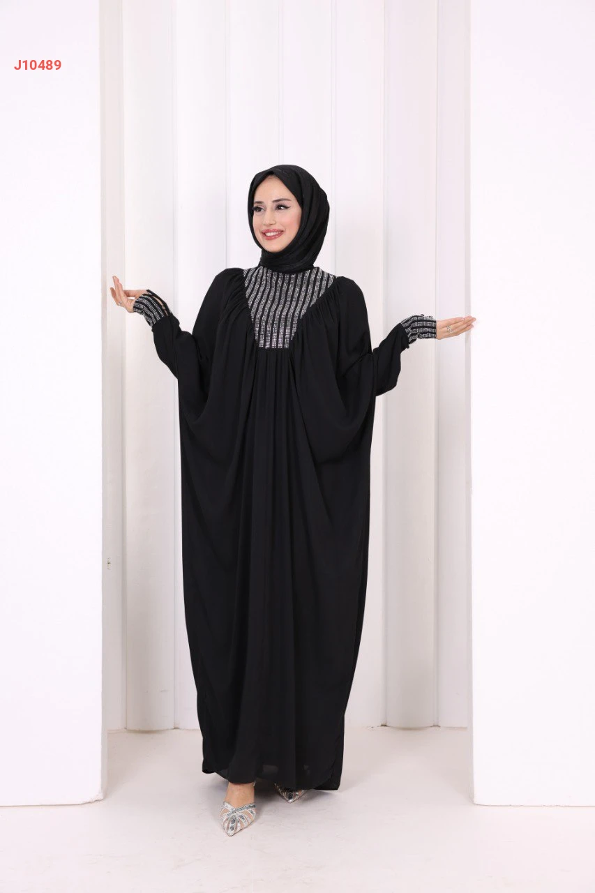 عباية سادة بياقة مرتفعة وأكمام مرصعة بالستراس