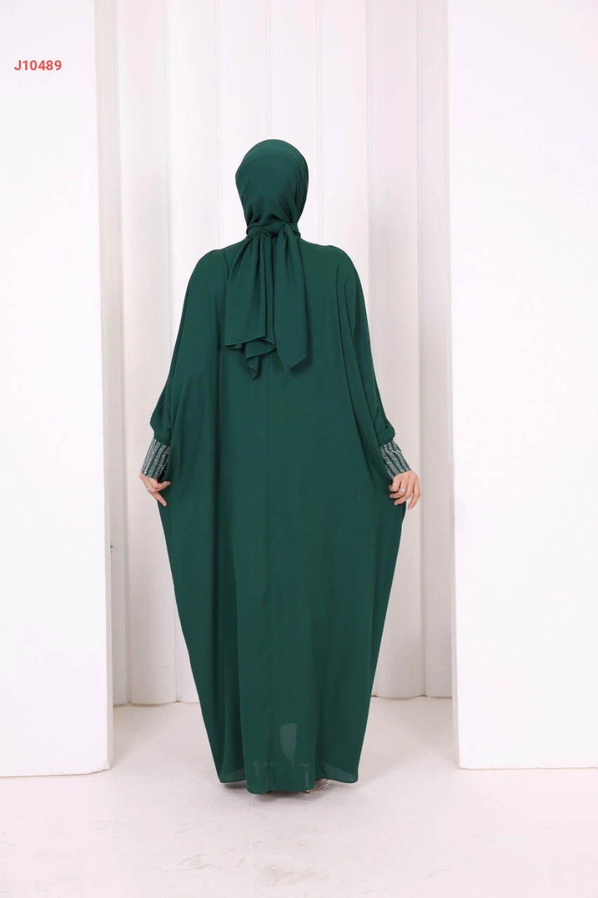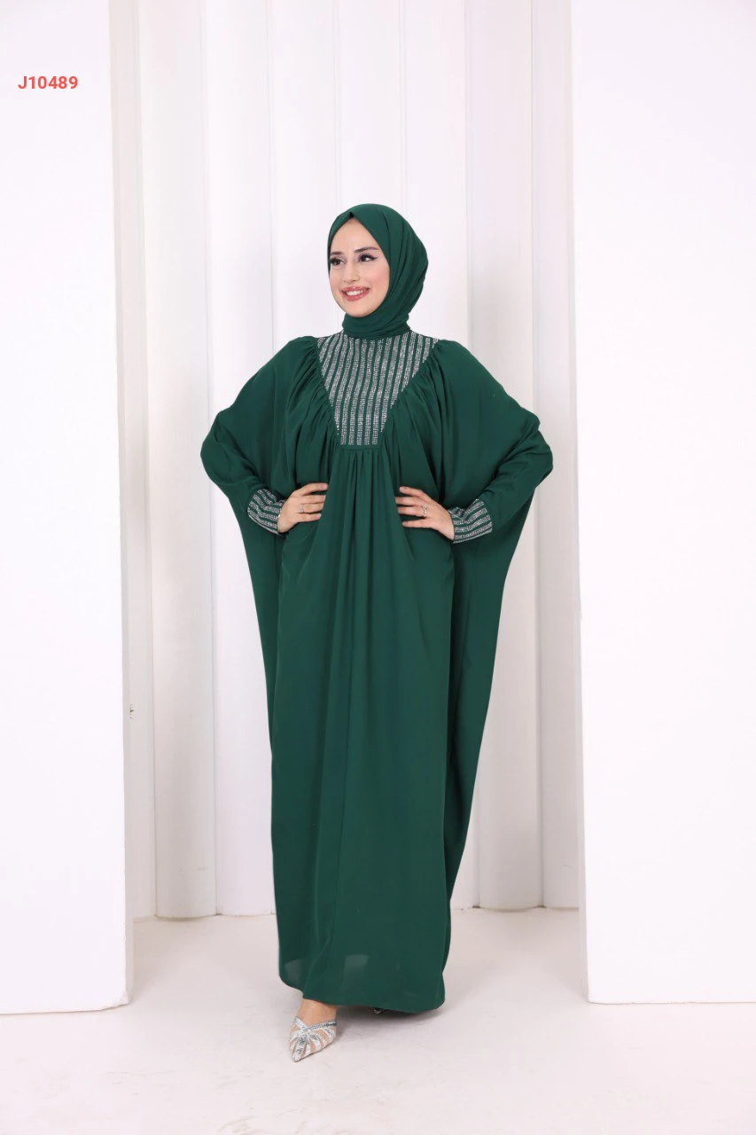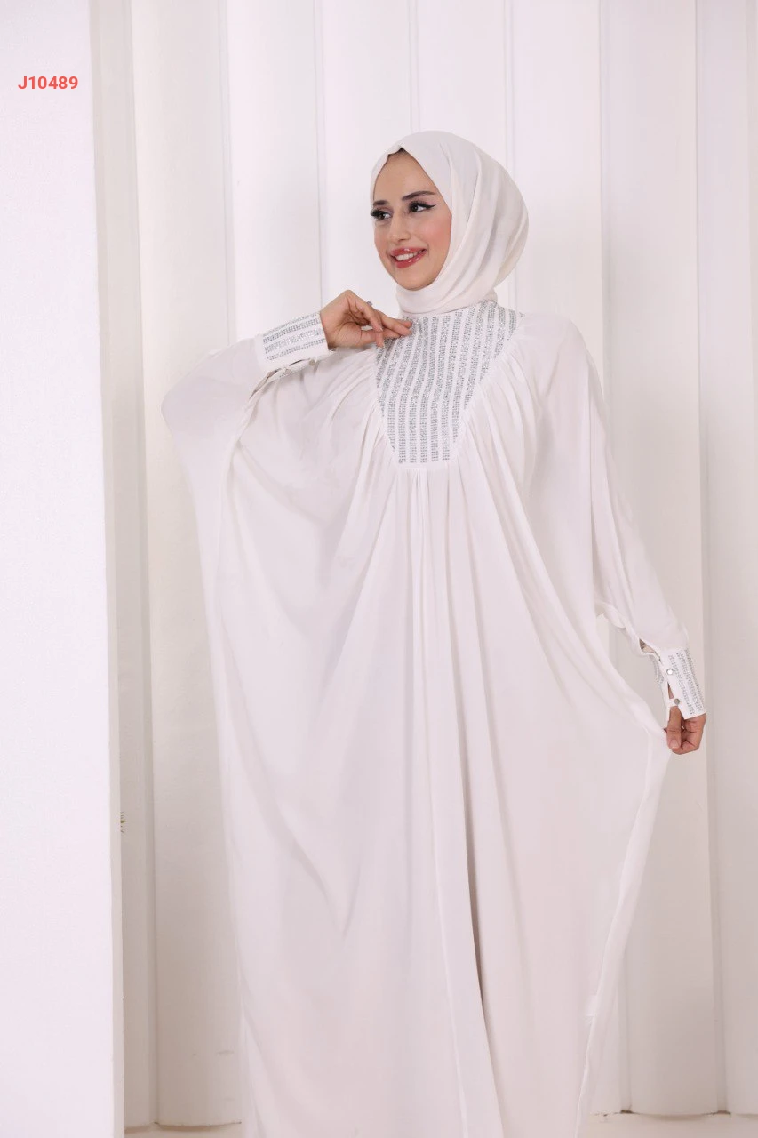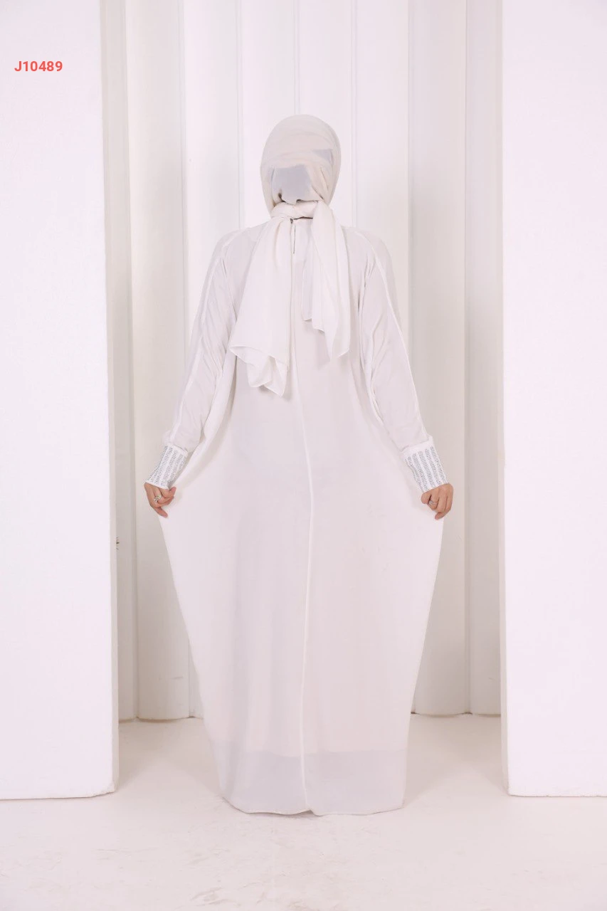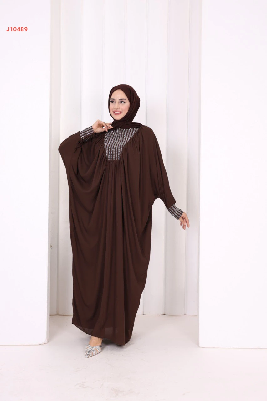 عباية سادة بياقة مرتفعة وأكمام مرصعة بالستراس