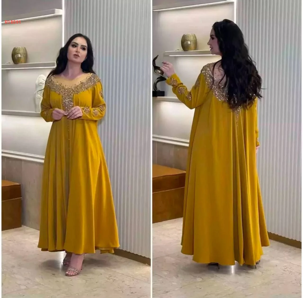 عباية سادة بياقة شيفون مزينة بالألماس عند الصدر و الأكمام
