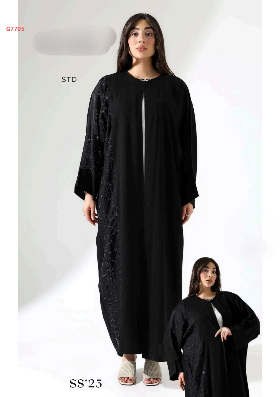 عباية سادة بأكمام مطرزة فتح بياقة دائرية