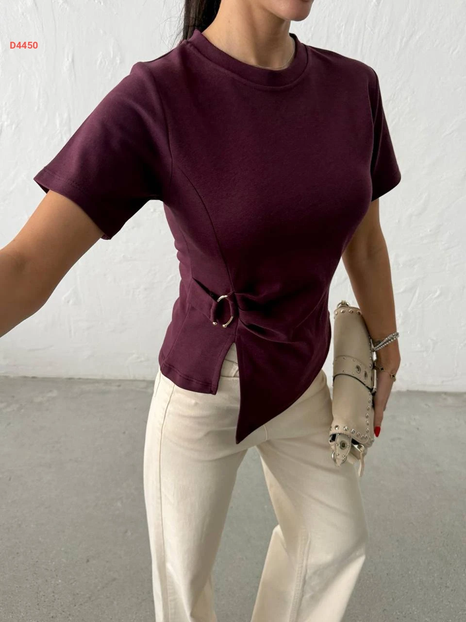 بلوزة سادة بياقة دائرية