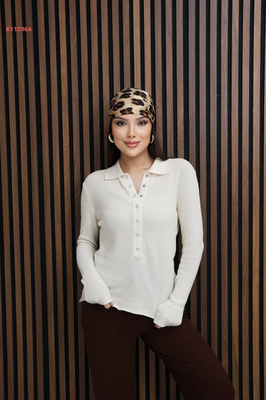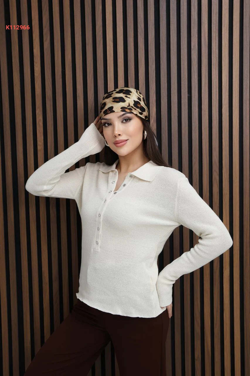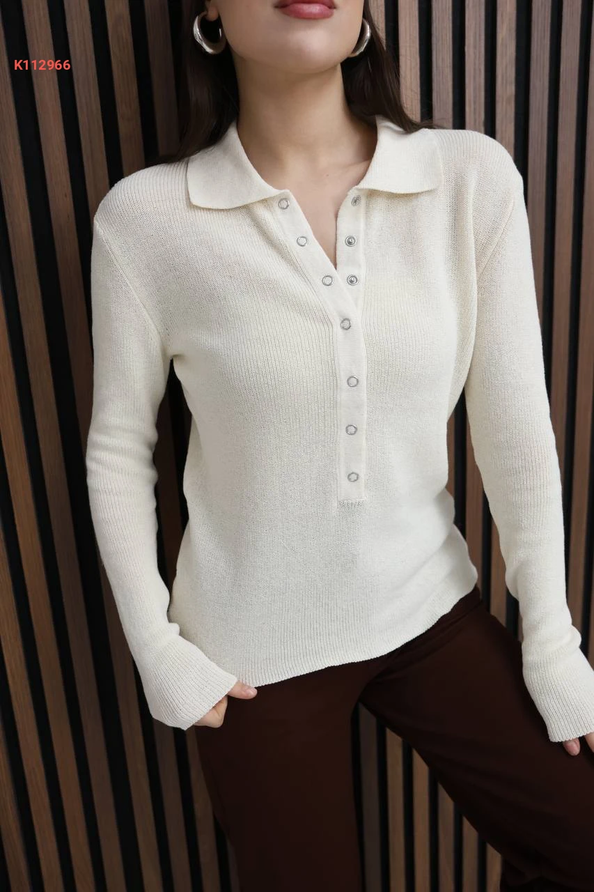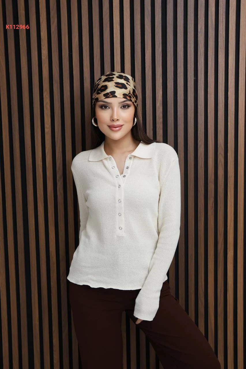 بلوزة سادة بياقة قميص بأزرار كبس