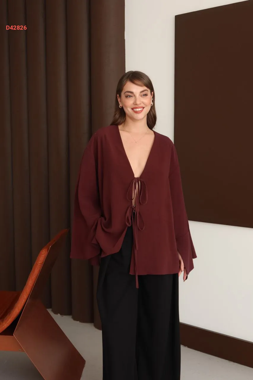 بلوزة سادة مع رابطات