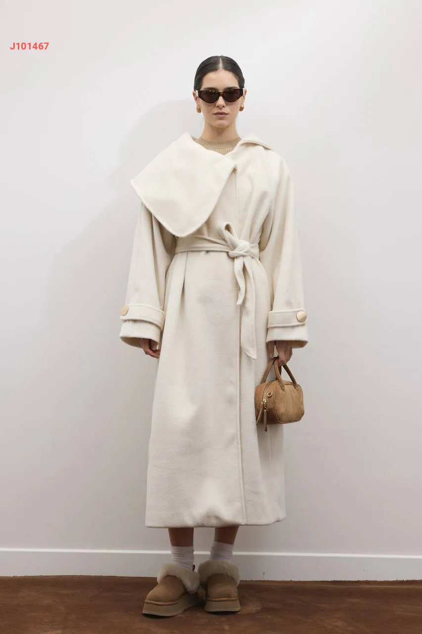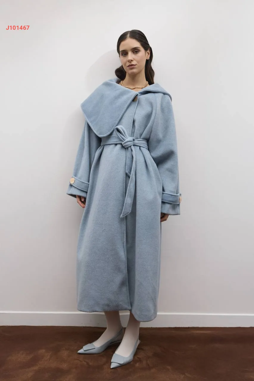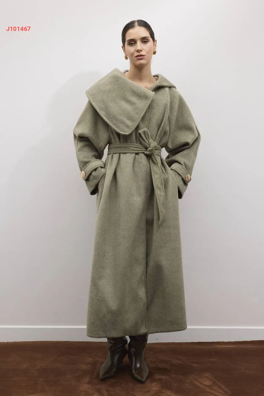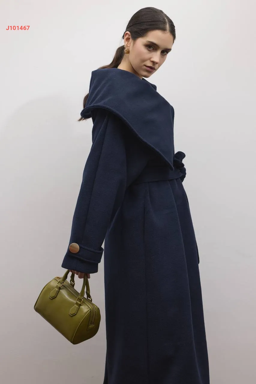 معطف سادة مع حزام مع ياقة عريضة