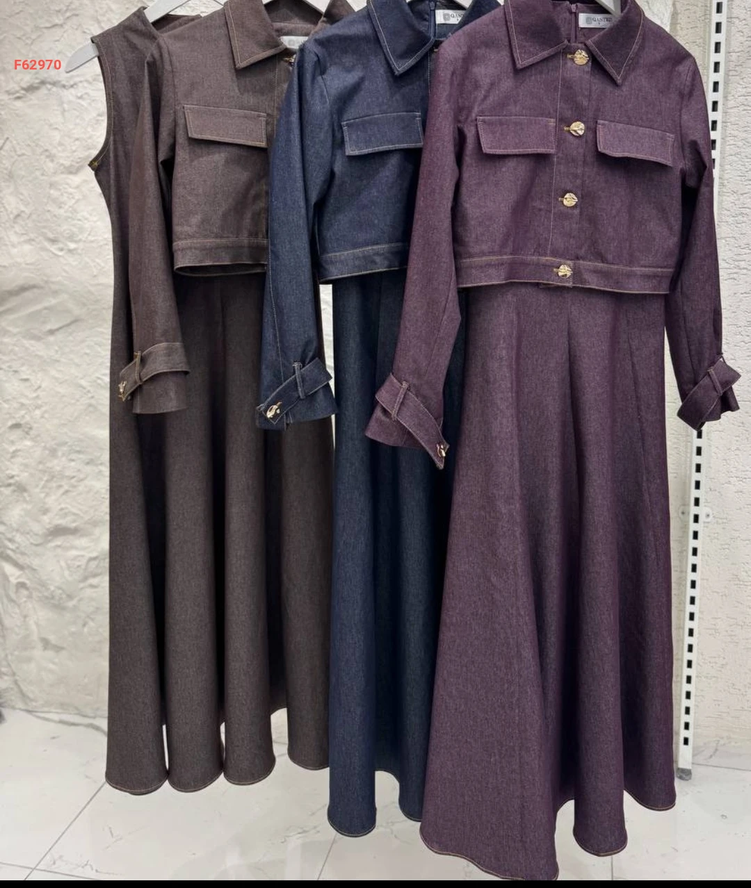 فستان جينز سادة مع جاكيت بأزرار