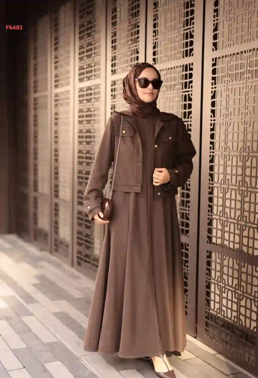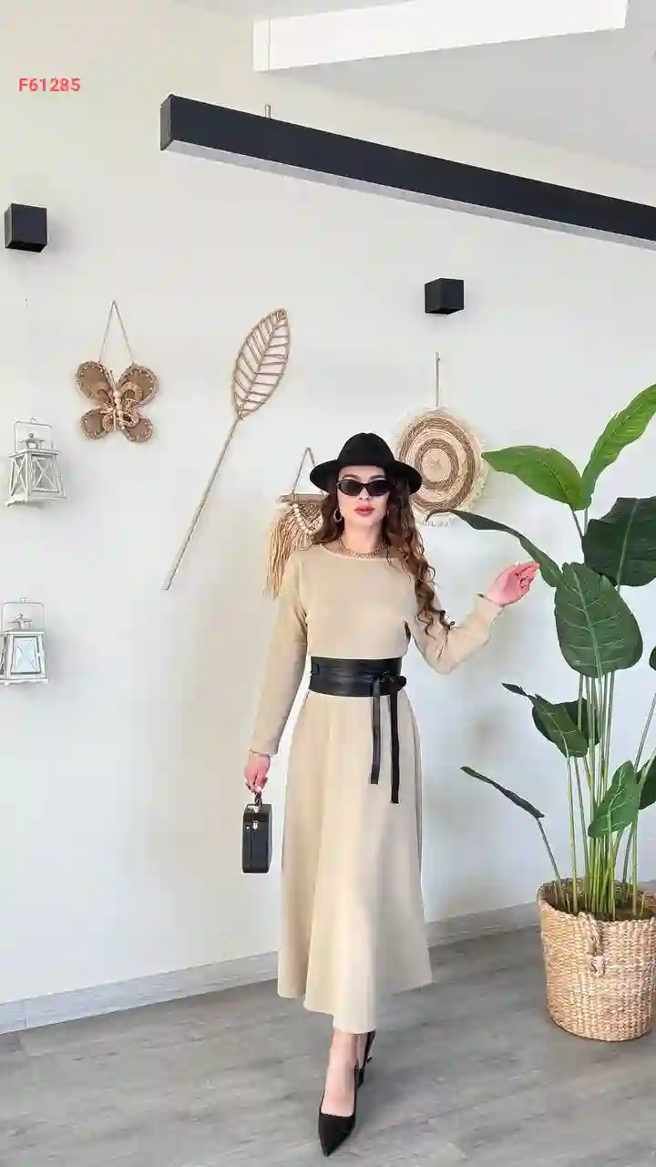 فستان سادة سحاب من الامام مع طاقية وزمة خصر وجيب