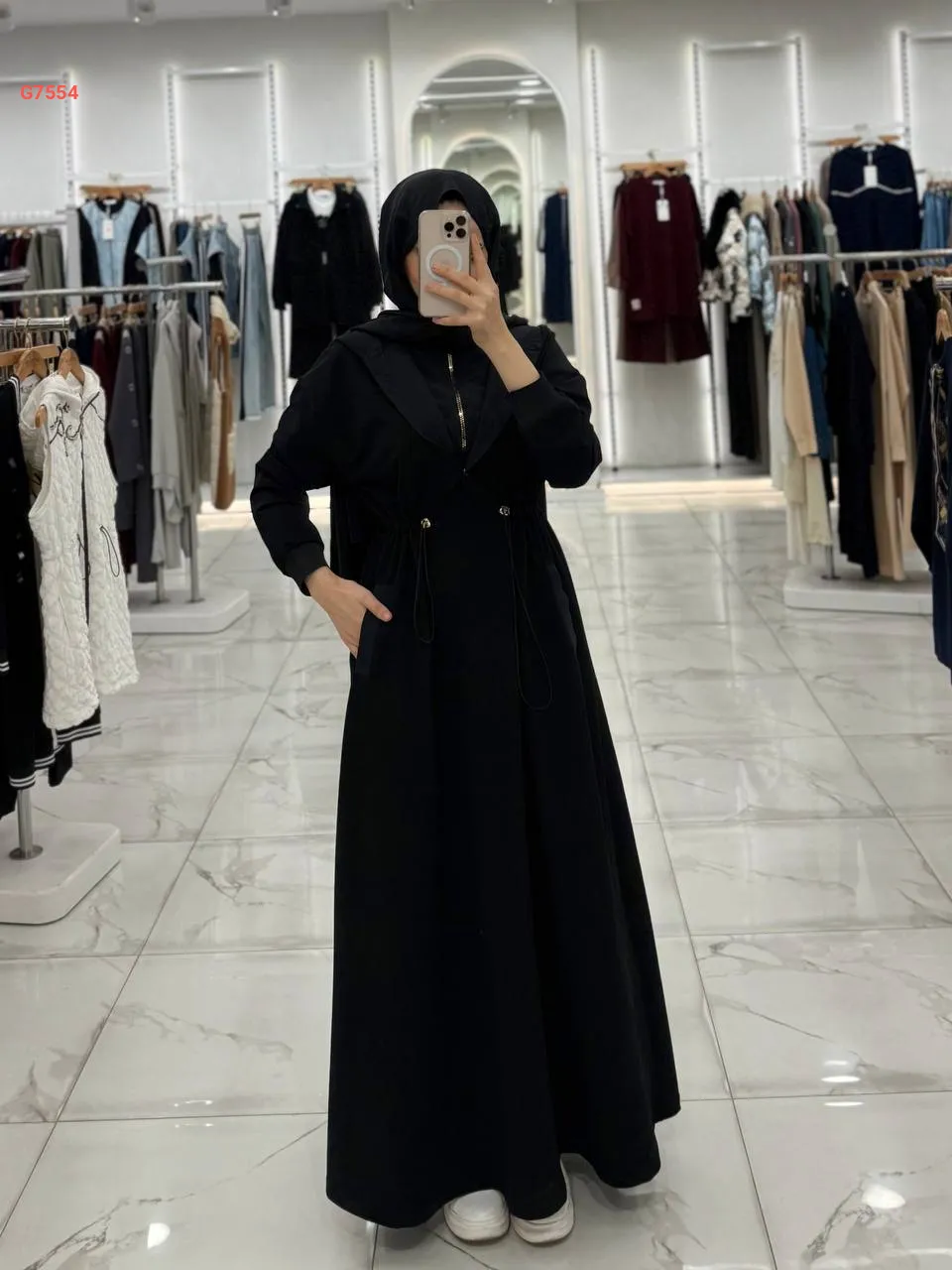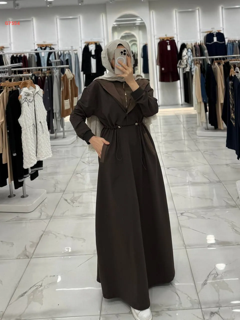 فستان سادة مع زمة عند الخصر بسحاب نصفي عند القبة