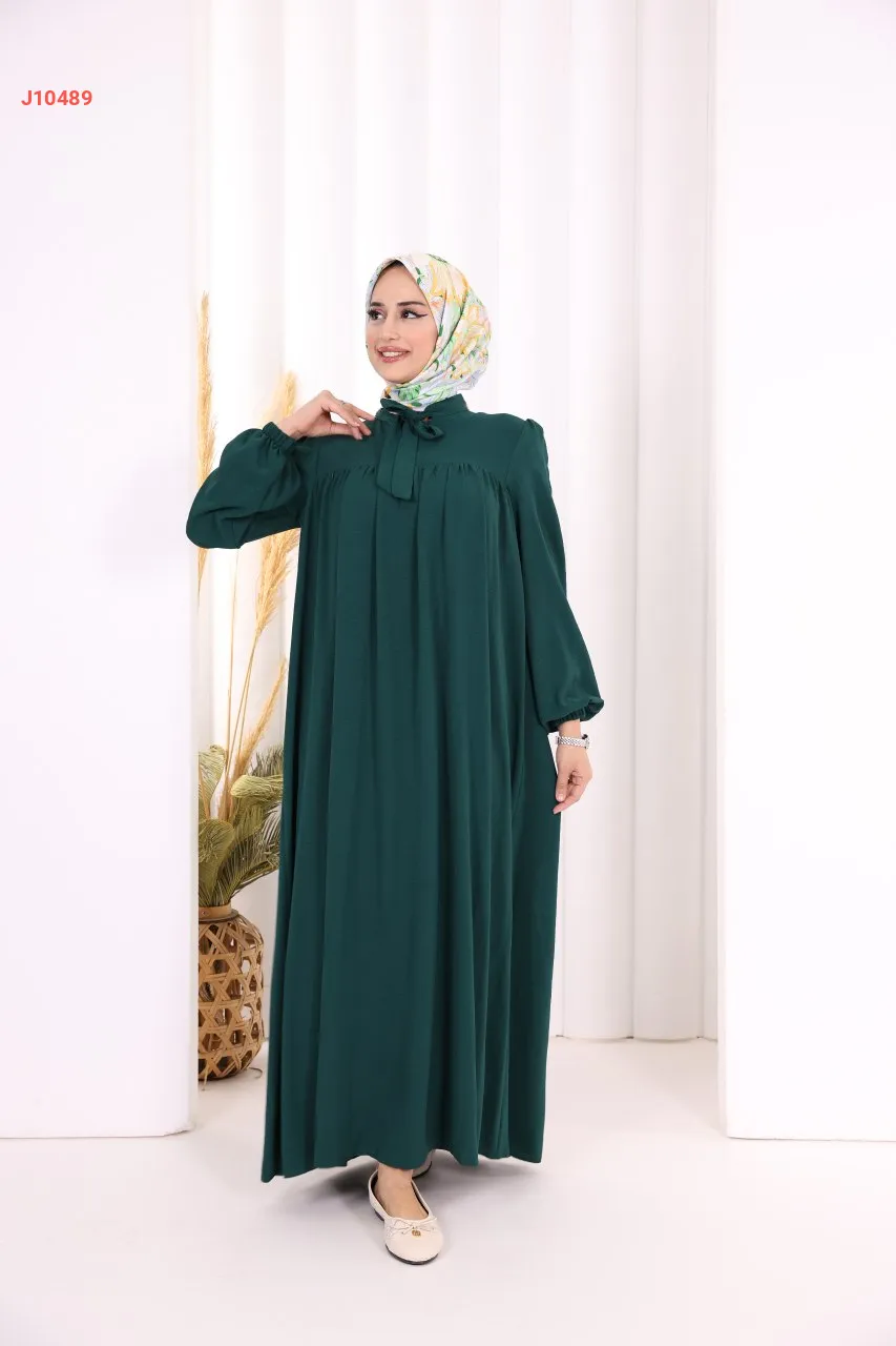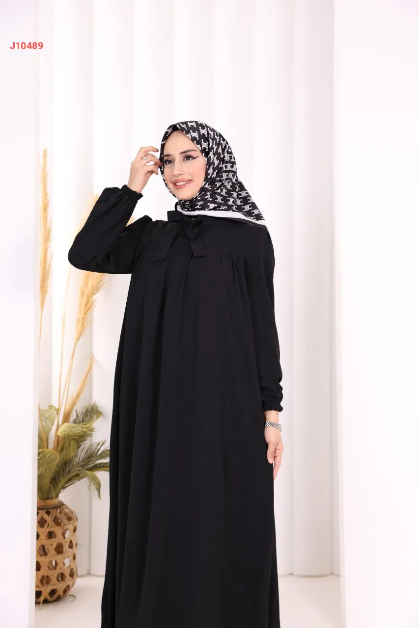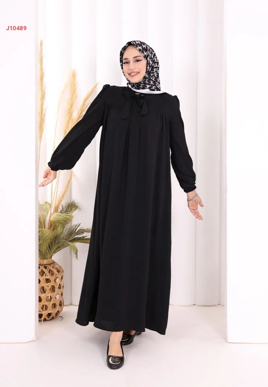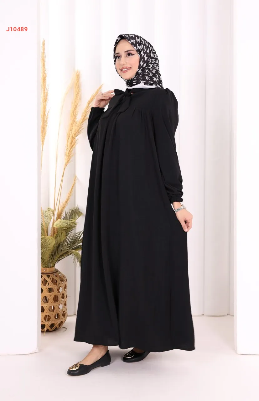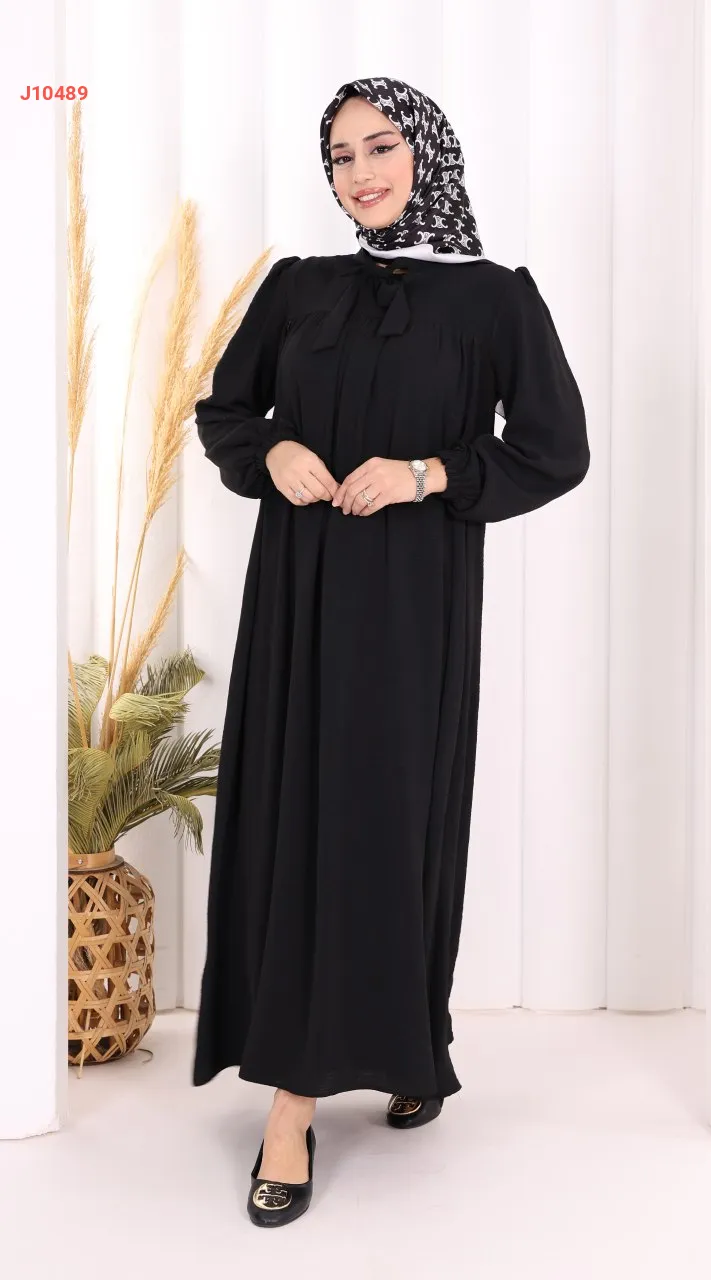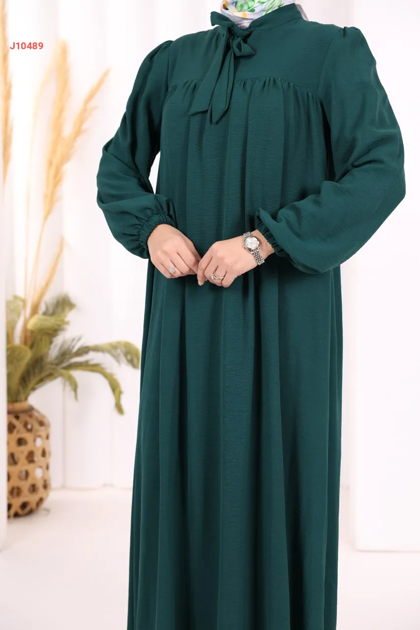 فستان سادة واسع مع ربطة عنق
