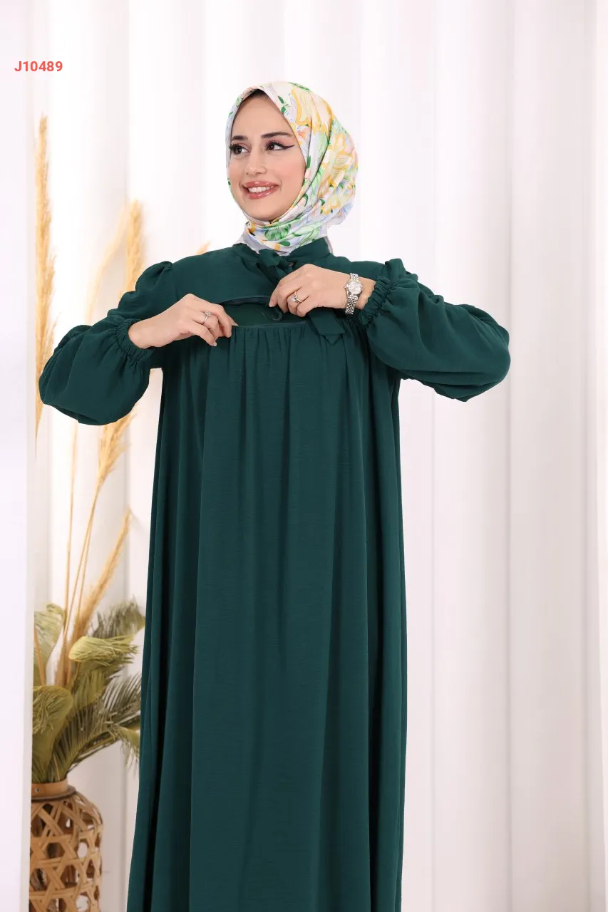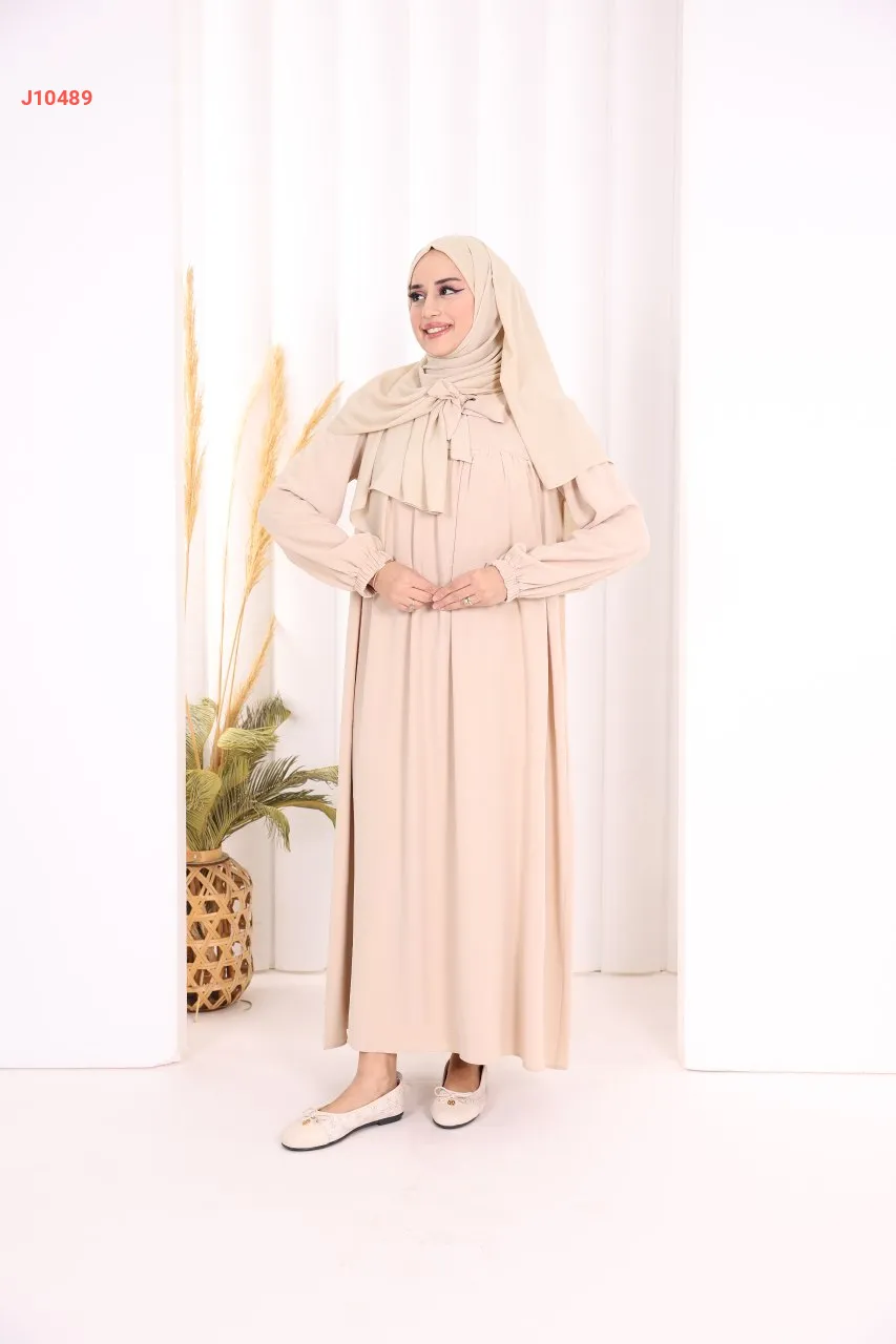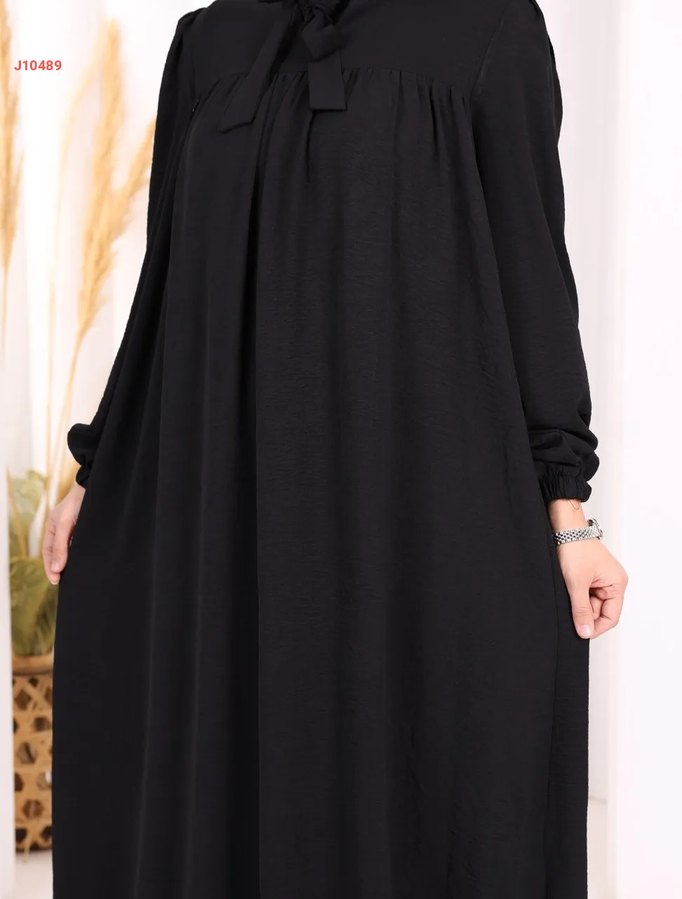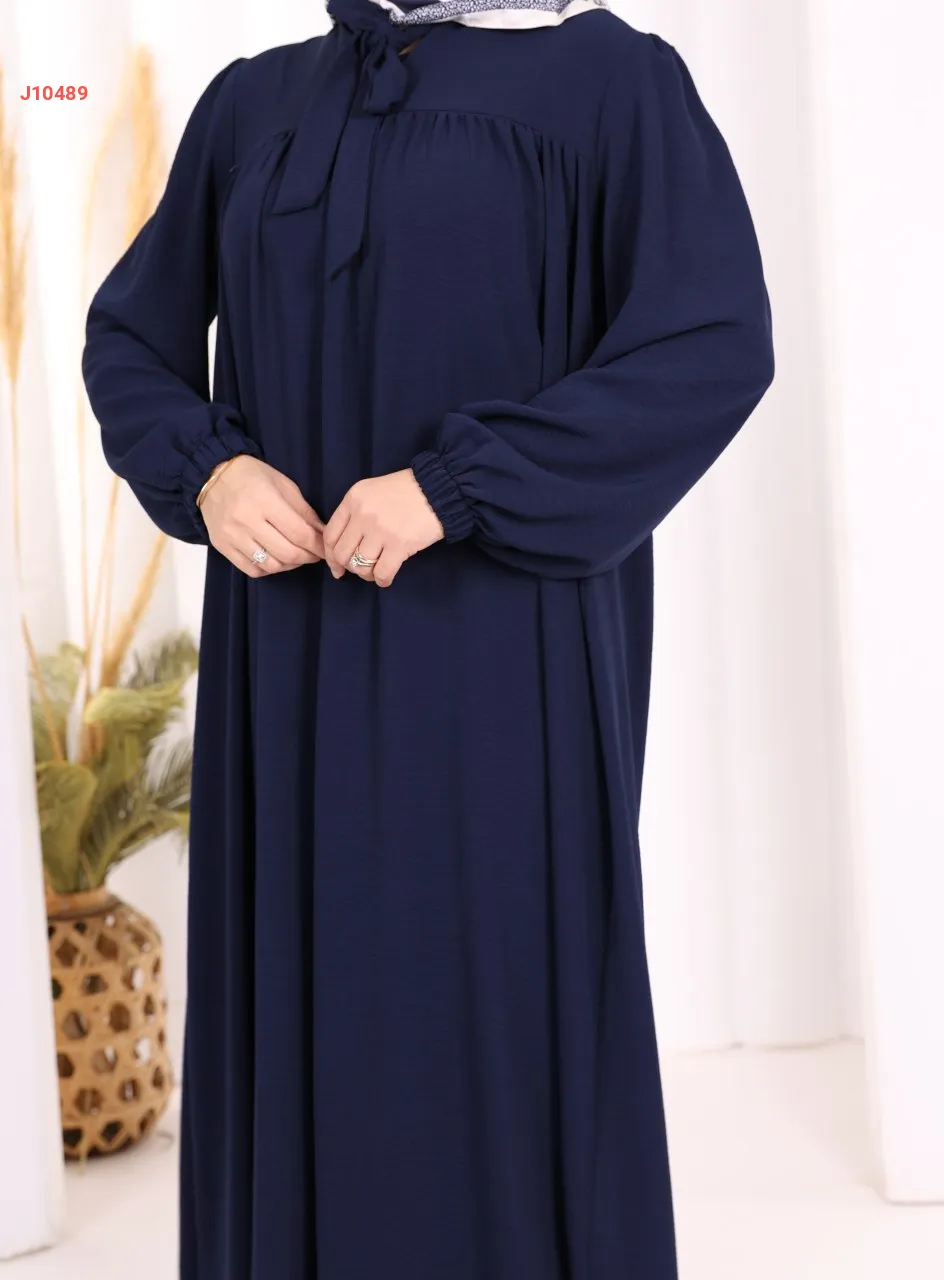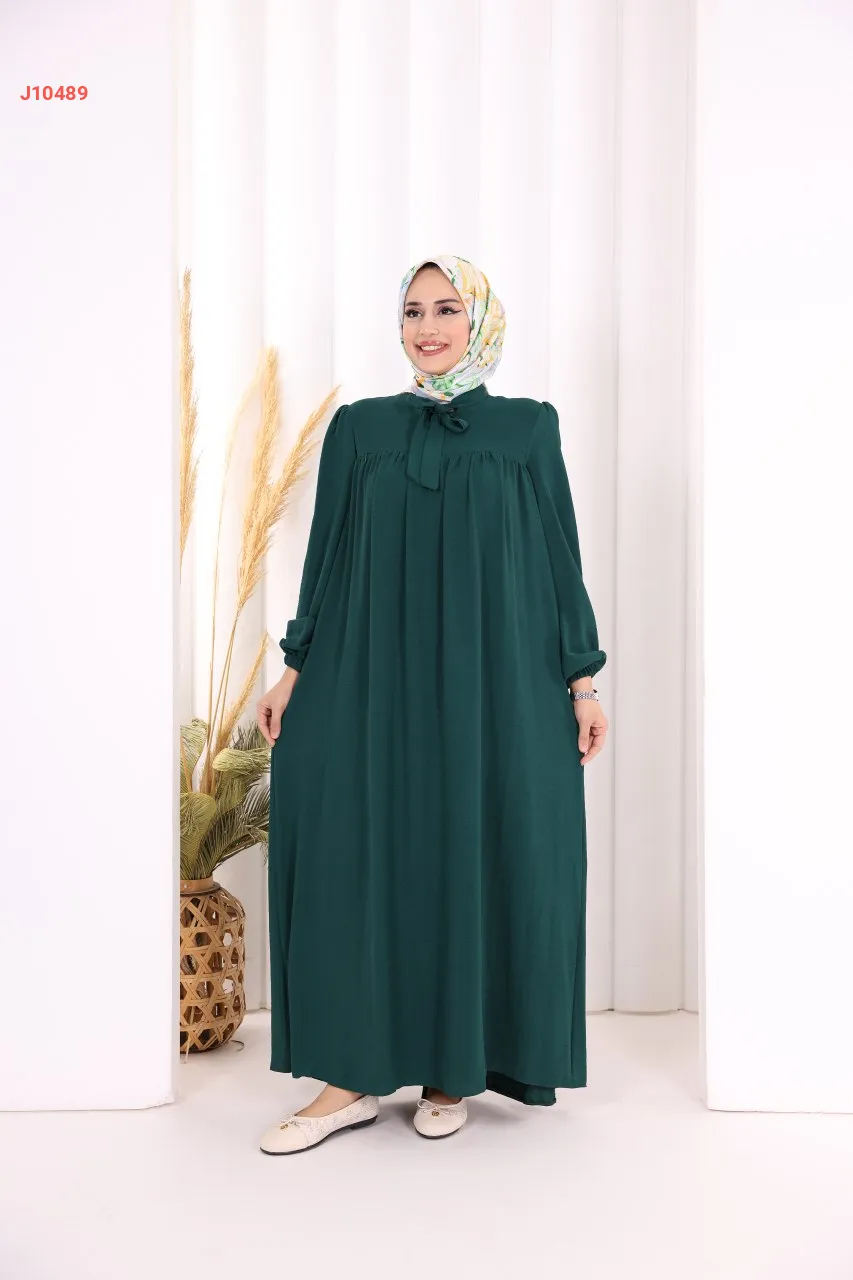 فستان سادة واسع مع ربطة عنق