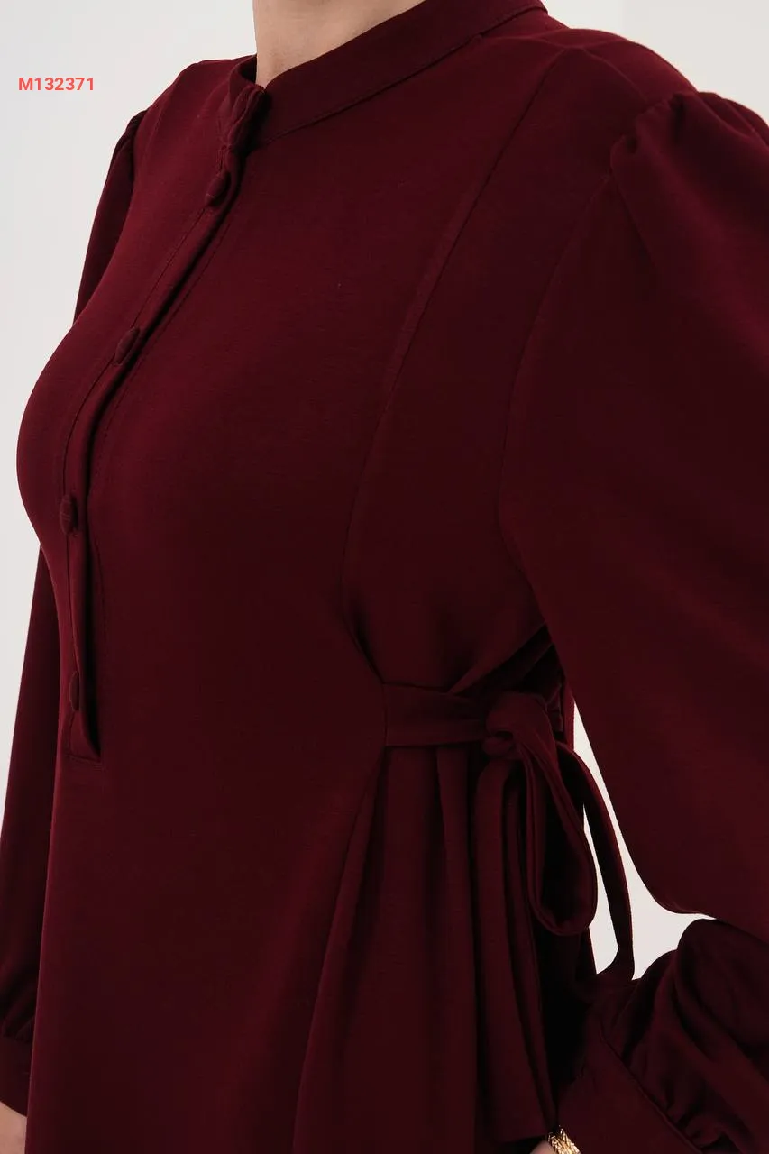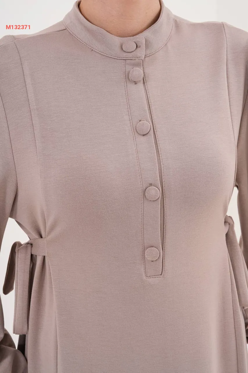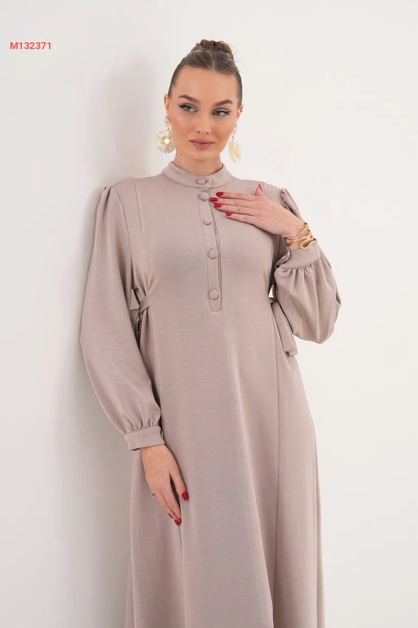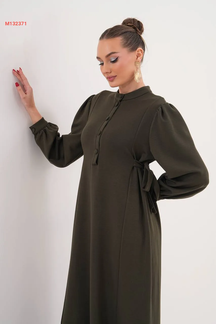فستان سادة بأزرار، مع زمة خصر على الجوانب