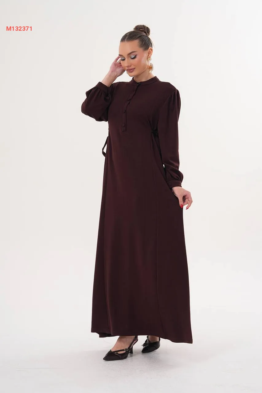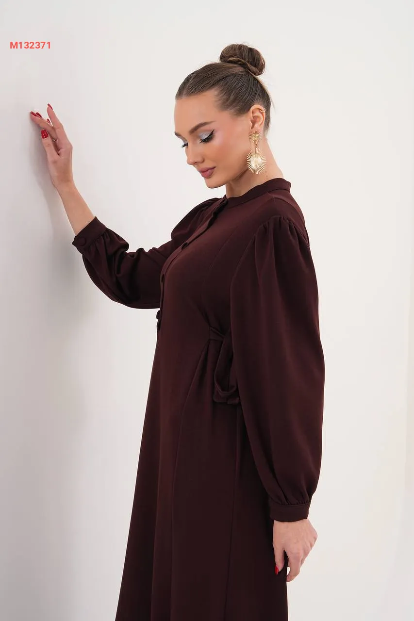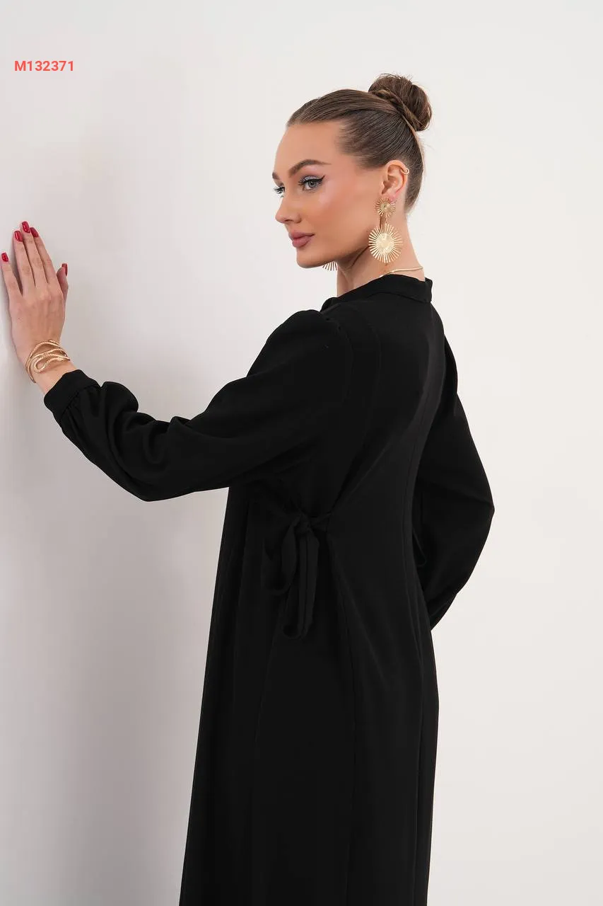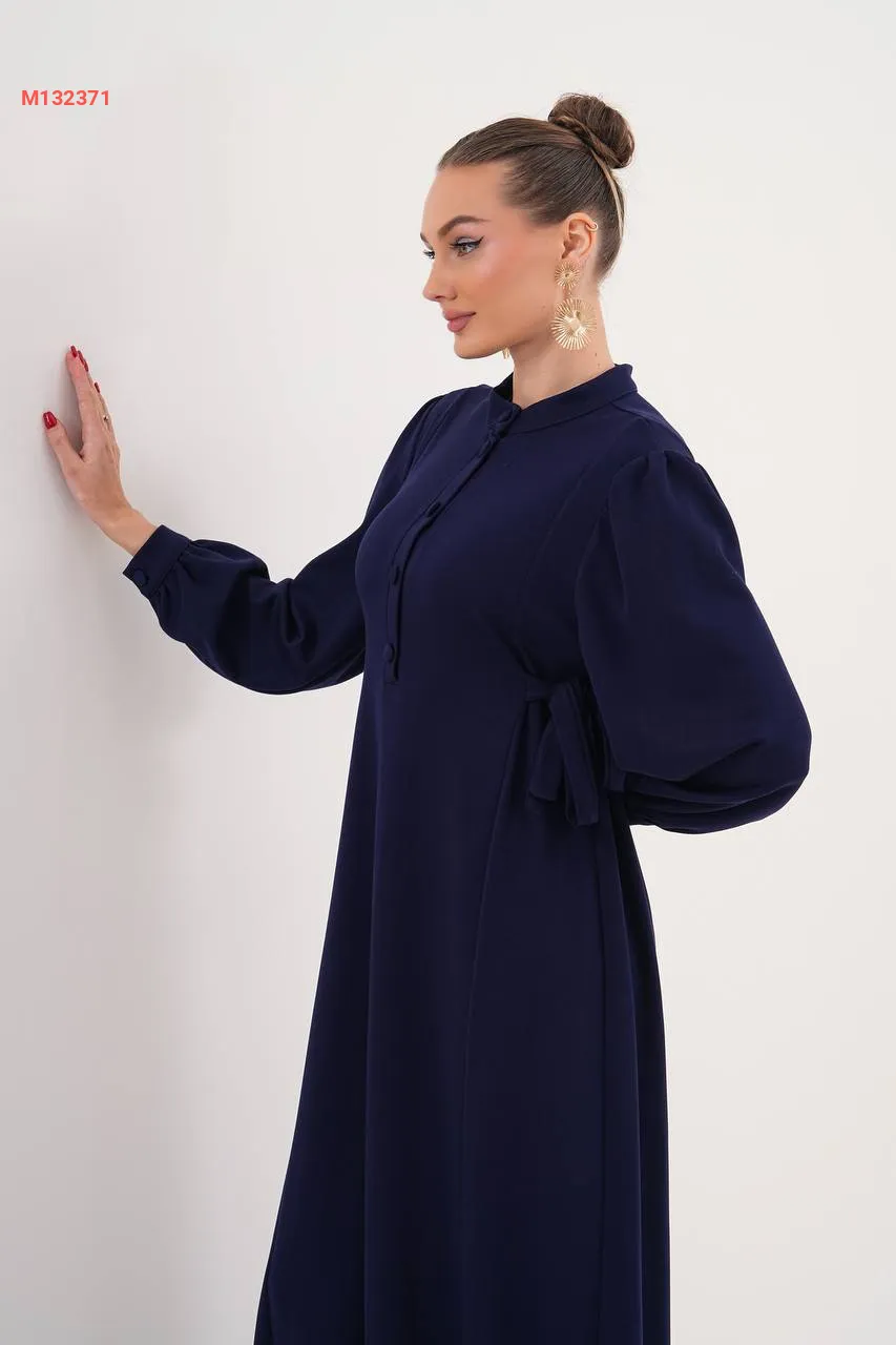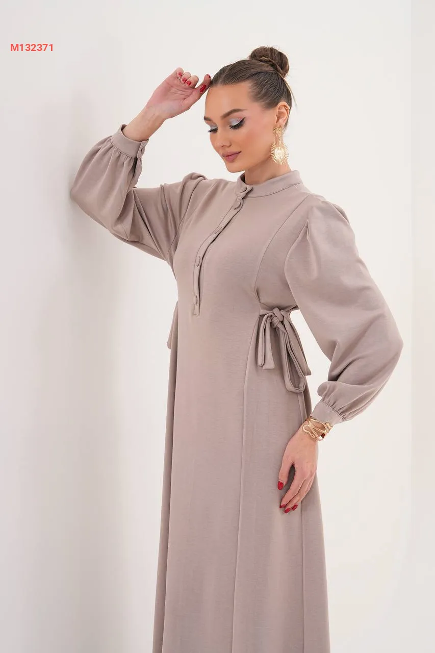 فستان سادة بأزرار، مع زمة خصر على الجوانب