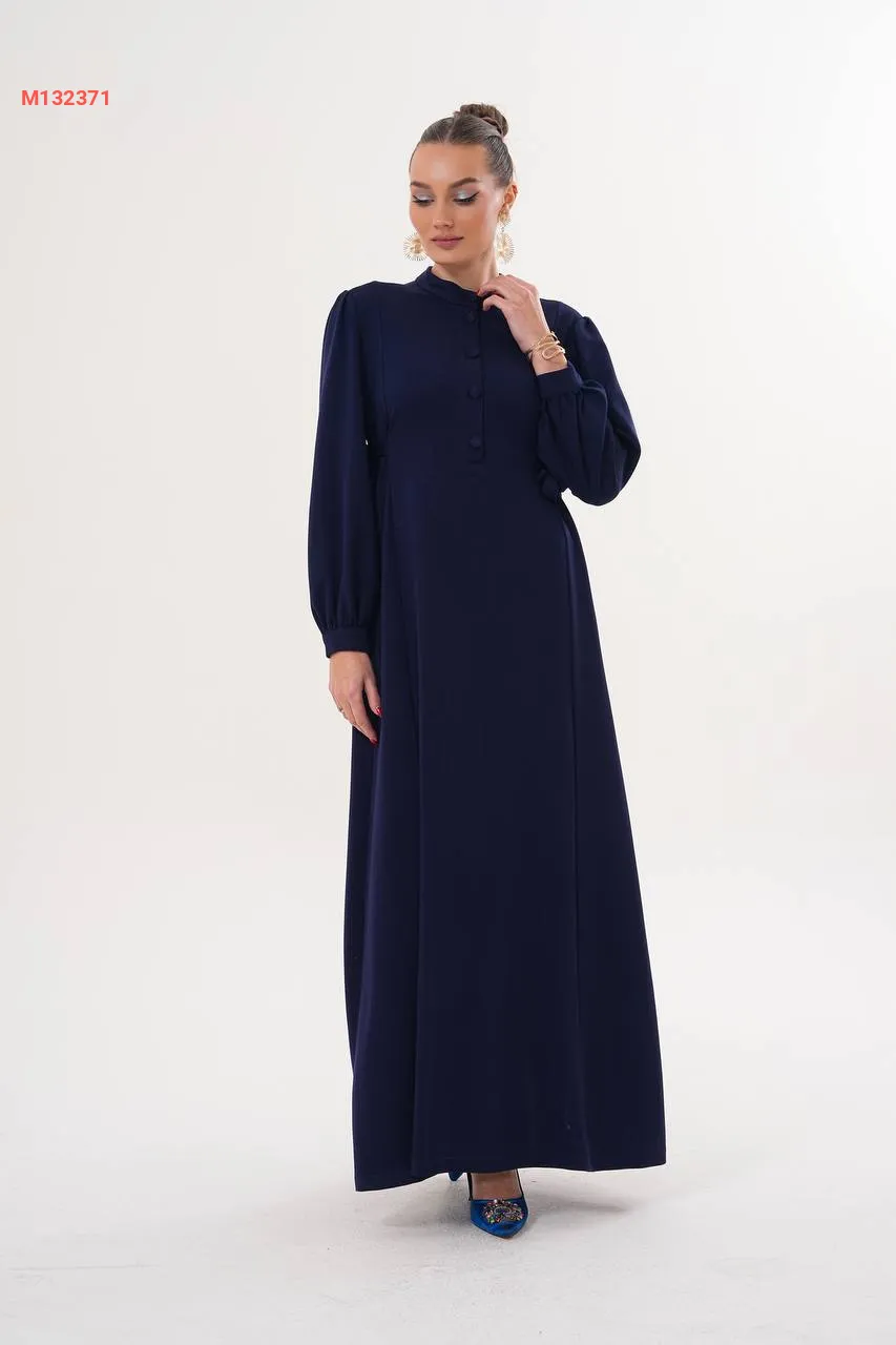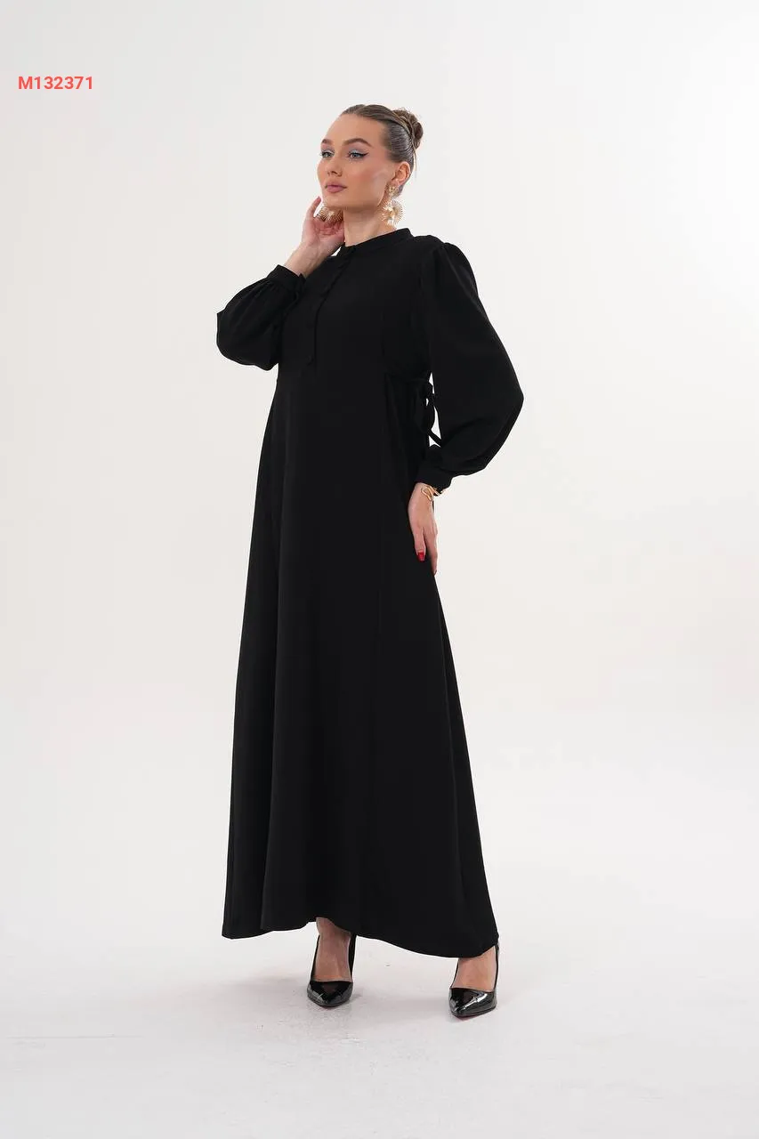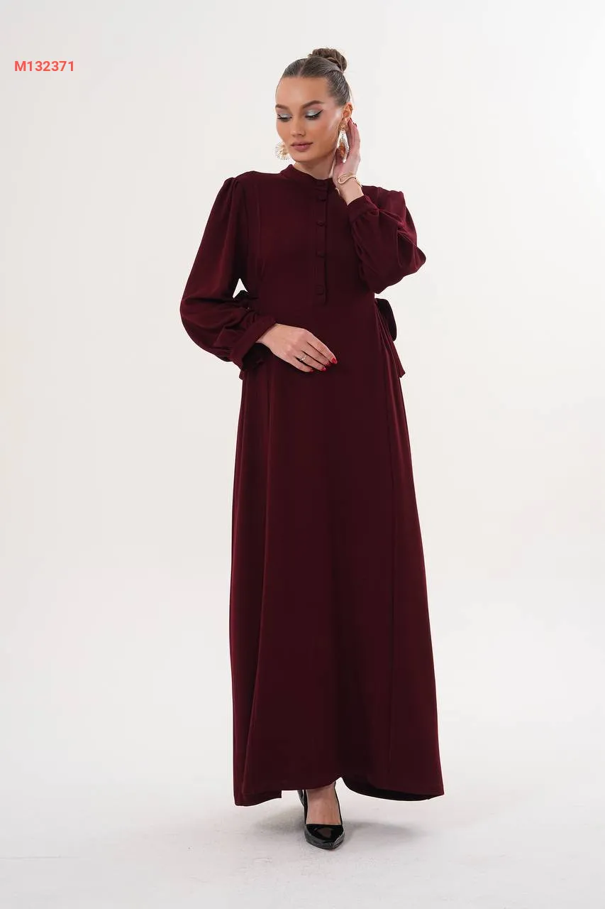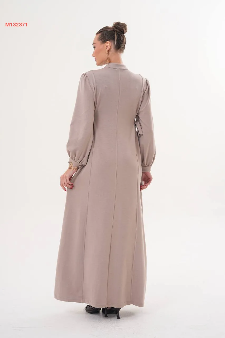 فستان سادة بأزرار، مع زمة خصر على الجوانب