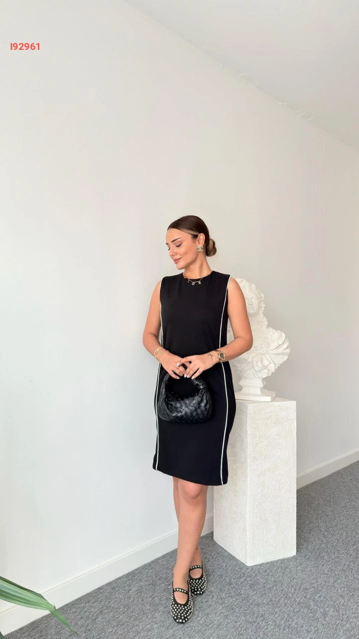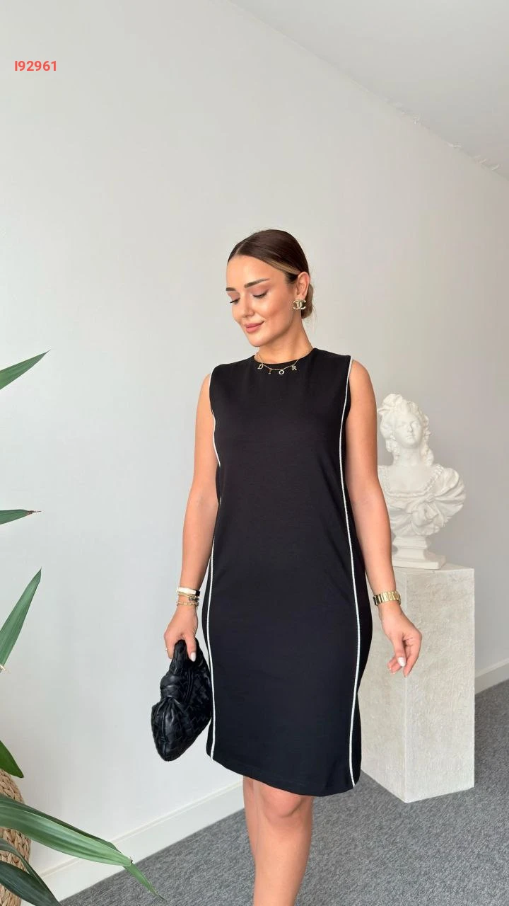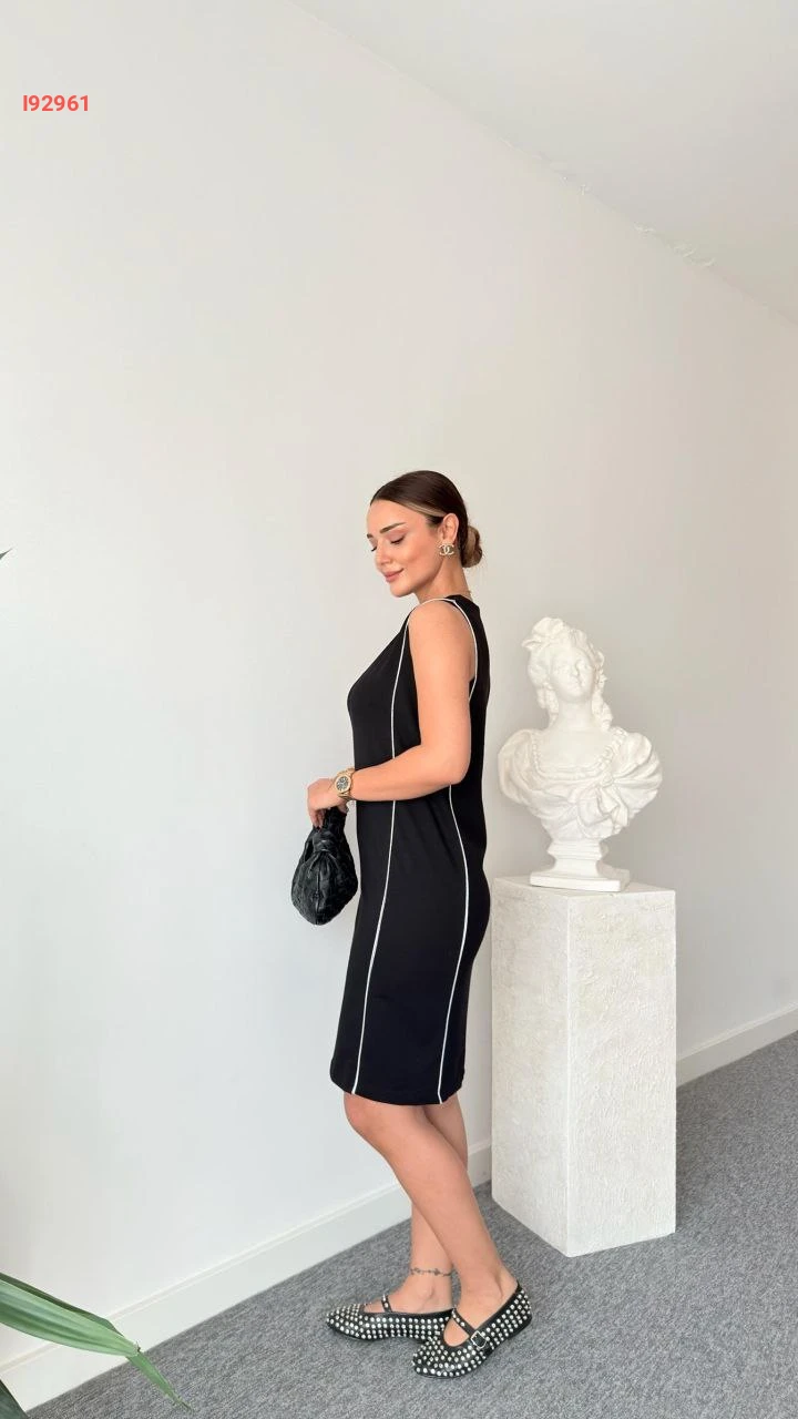 فستان حفر سادة بياقة دائرية